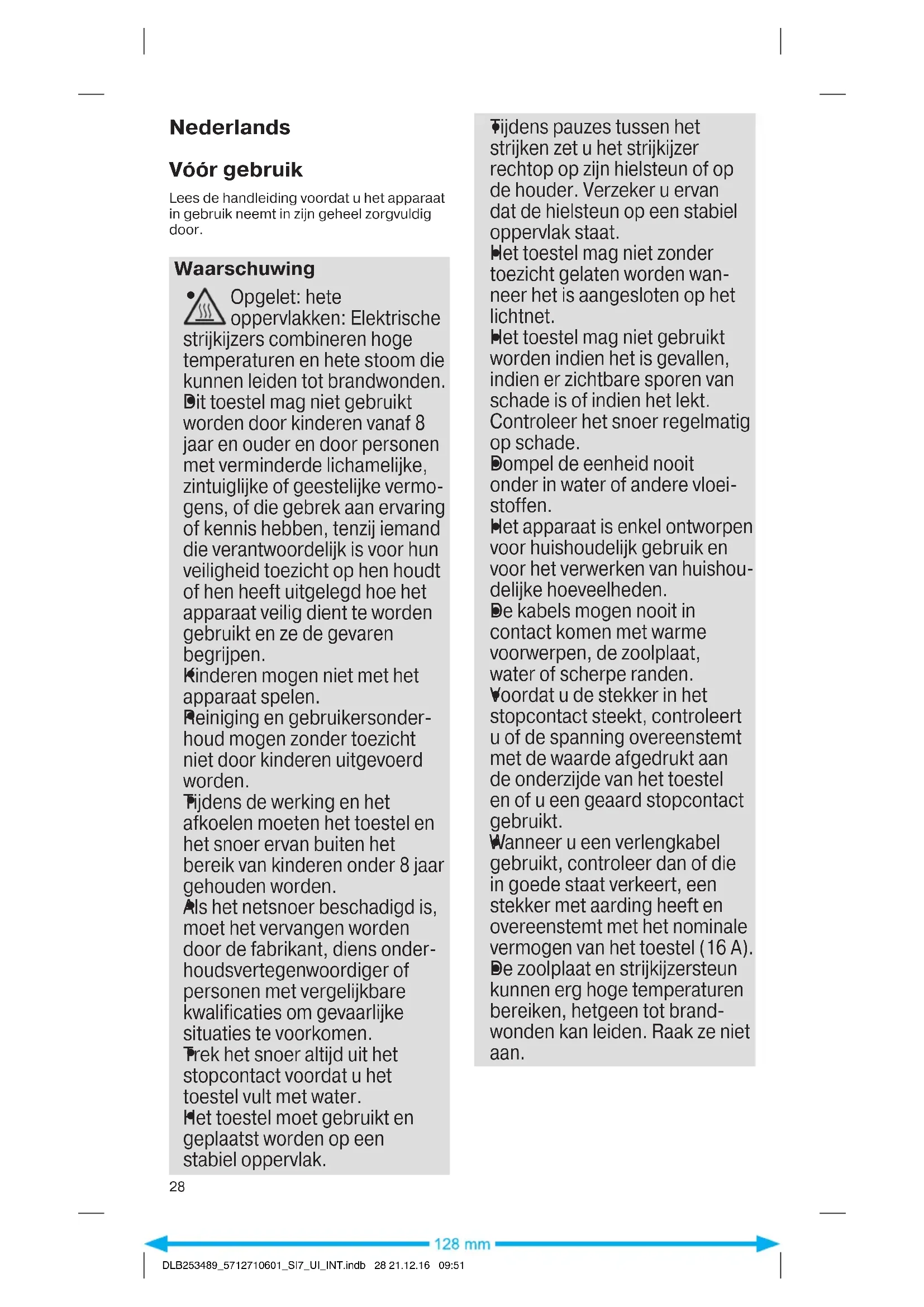 DLB253489_5712710601_SI7_UI_INT.indb 27 21.12.16 09:51Nederlands Vóór gebruik Lees de handleiding voordat u het apparaat in gebruik neemt in zijn geheel zorgvuldig door. Waarschuwing