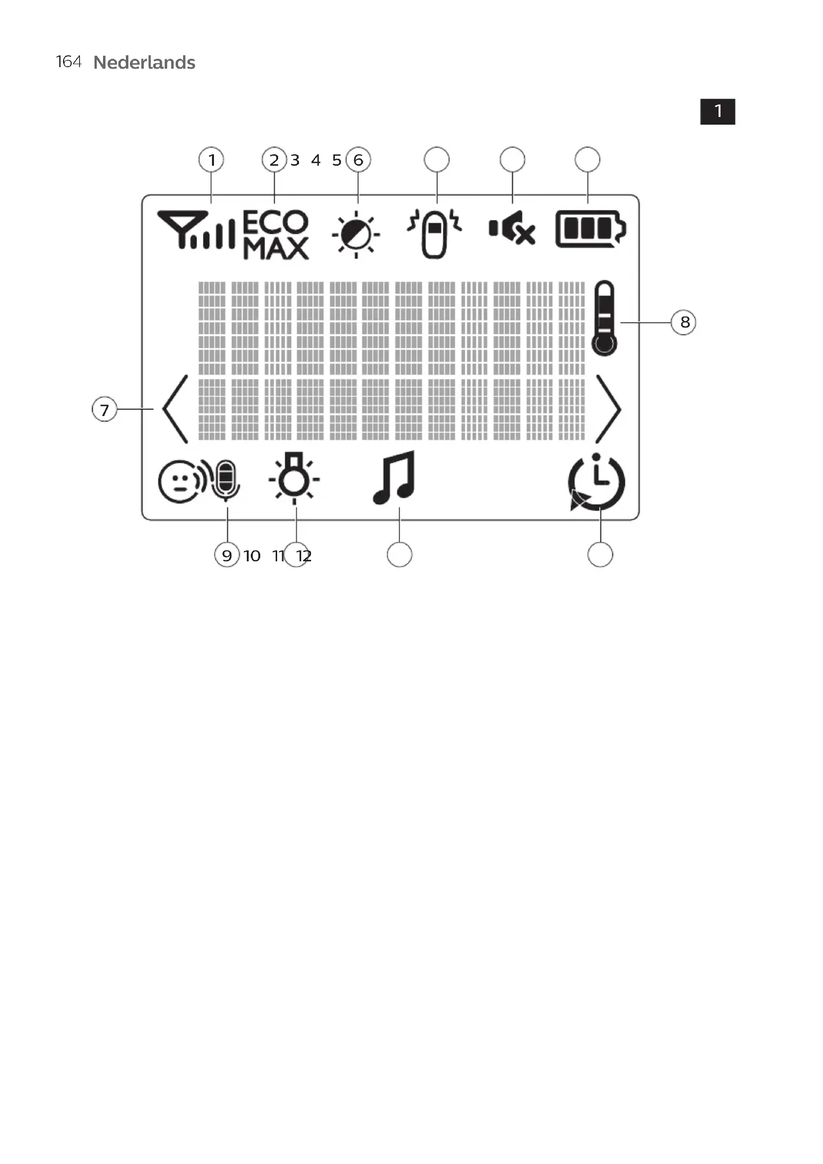 Display van de ouderunit (afb. 1)
