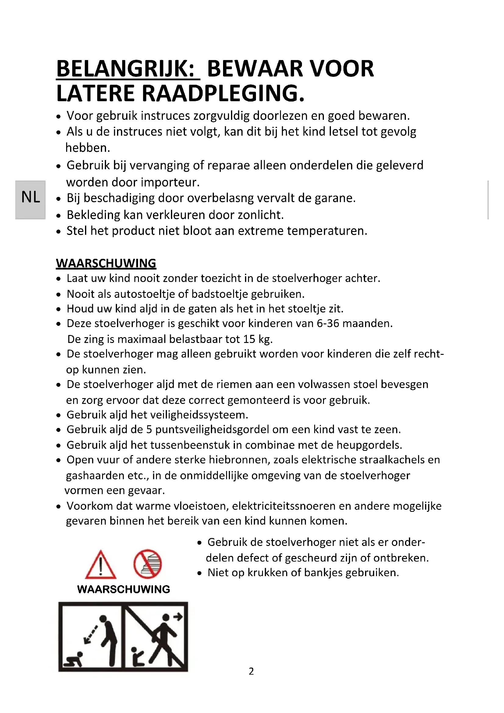 - De stoelverhoger mag alleen gebruikt worden voor kinderen die zichrecht op+kunnen zien.