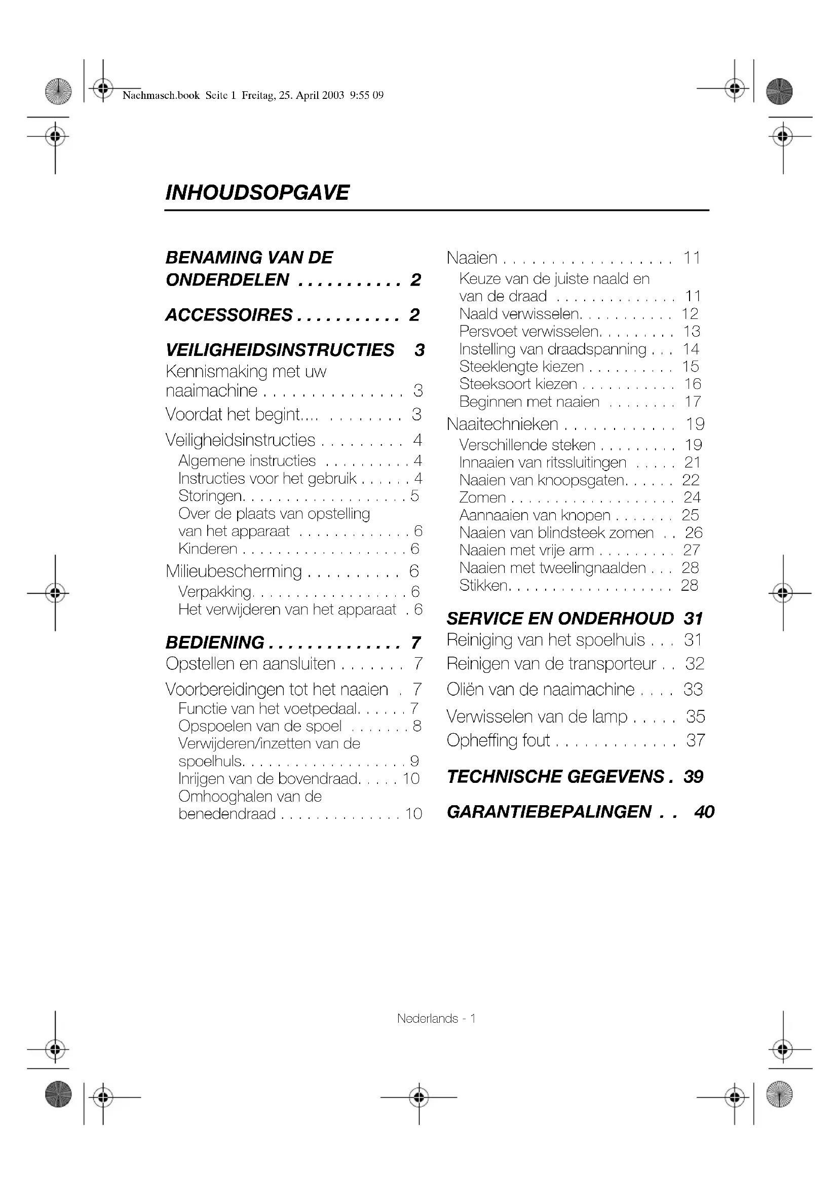 Voorbereidingen tot het naaien . 7
