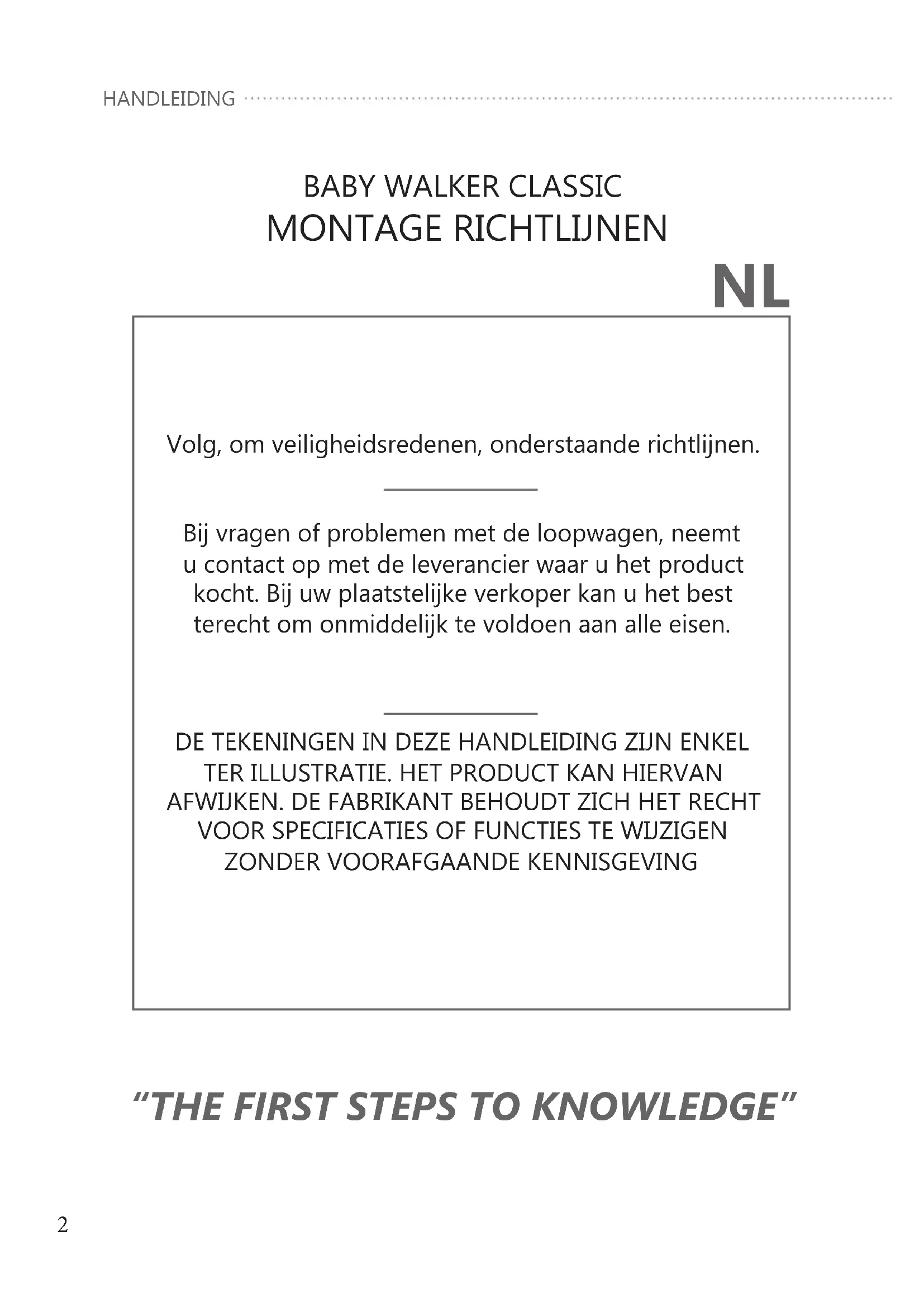 Bij vragen of problemen met de loopwagen, neemt u contact op met de leverancier waar u het product kocht. Bij uw plaatstelijke verkoper kan u het best terecht om onmiddelijk te voldoen aan alle eisen.