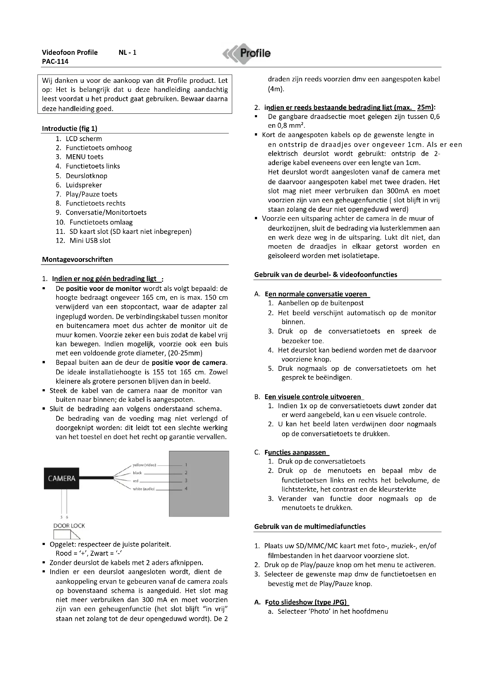 Wij danken u voor de aankoop van dit Profile product. Let op: Het is belangrijk dat u deze handleiding aandachtig leest voordat u het product gaat gebruiken. Bewaar daarna deze handleiding goed.