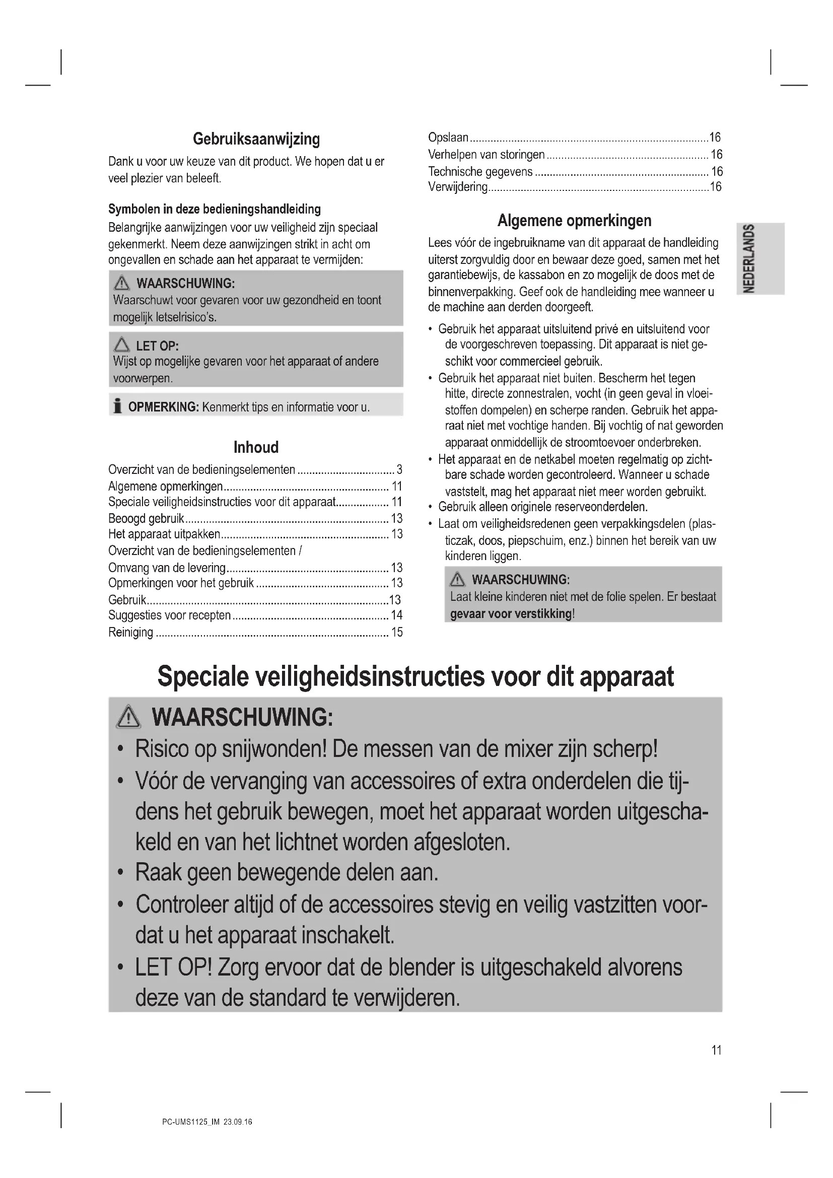 - Grijp nooit in de vulopening.13 PC-UMS1125_IM 23.09.16