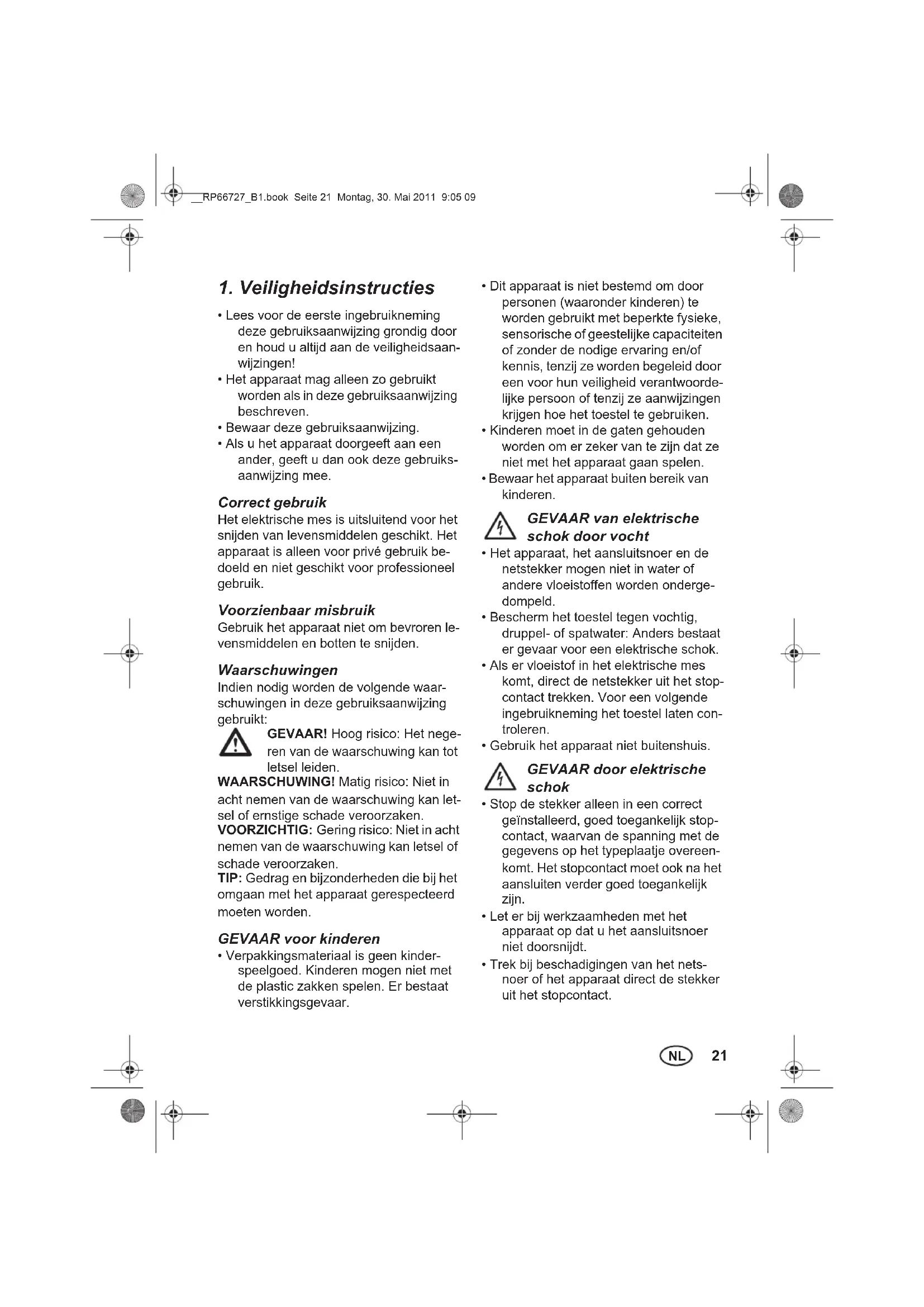 - Trek bij beschadigingen van het nets- noer of het apparaat direct de stekker uit het stopcontact. __RP66727_B1.book Seite 21 Montag, 30. Mai 2011 9:05 0922