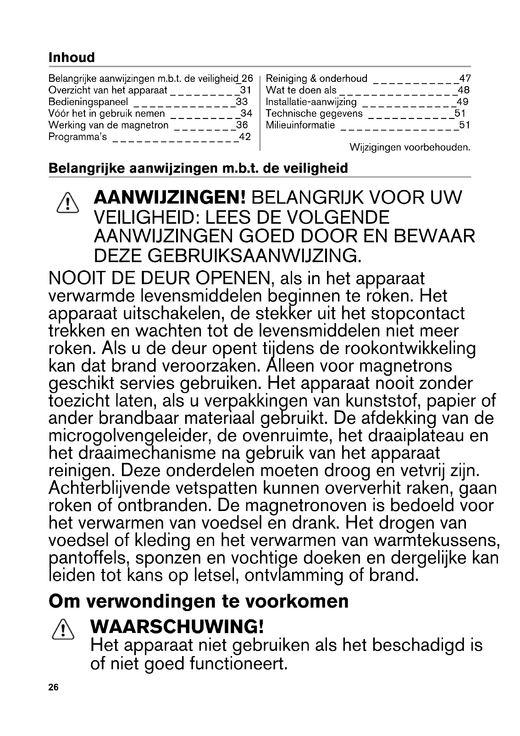 | Belangrijke aanwijzingen m.b.t. de veiligheid 26 | |