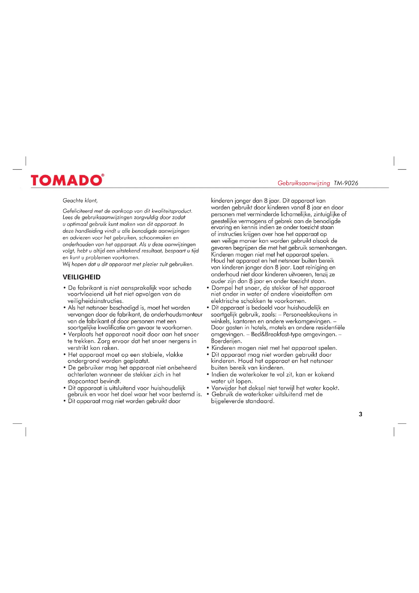 GEBRUIKSAANWIJZING TM9026 Tomado
