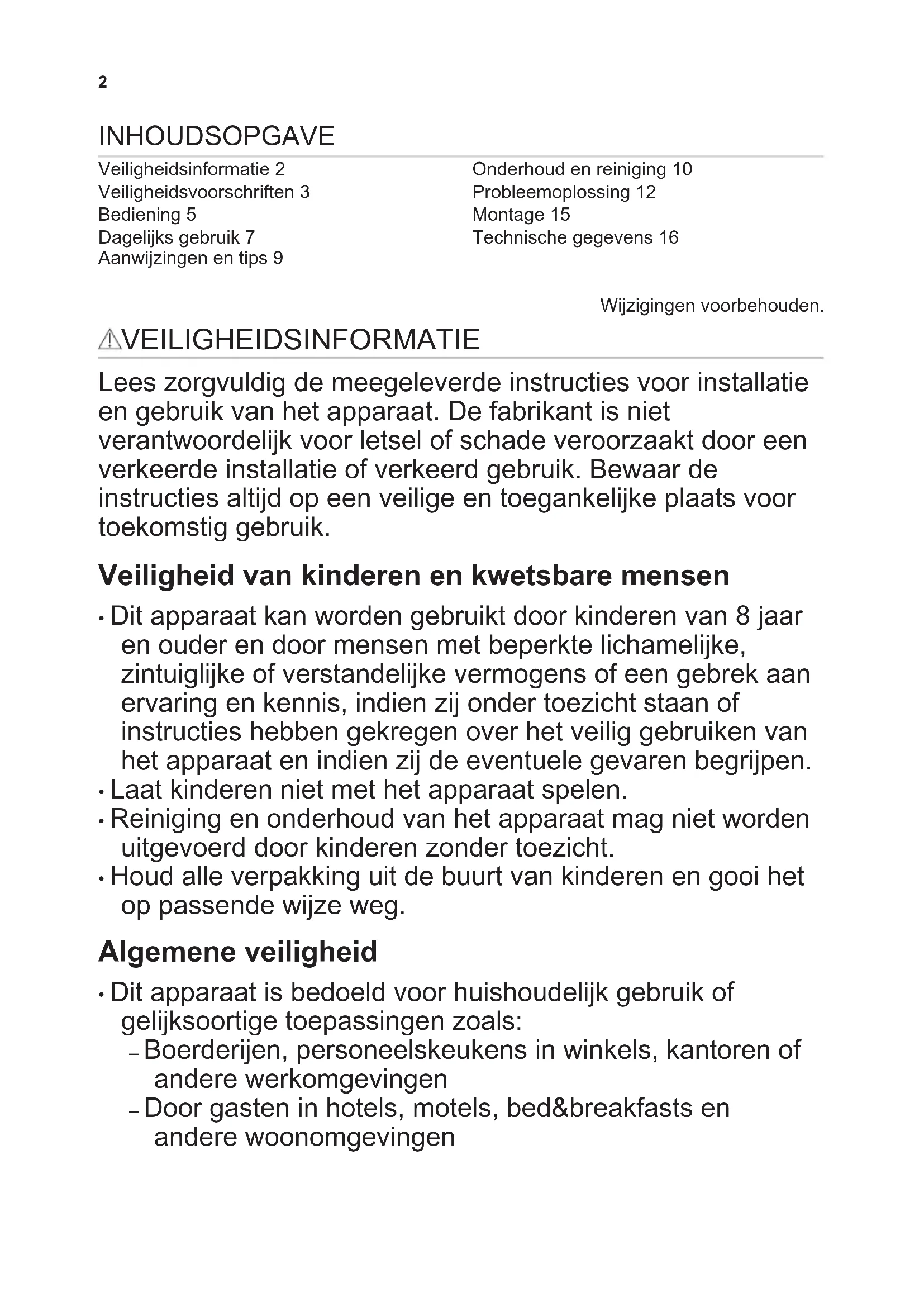 - Houd alle verpakking uit de buurt van kinderen en gooi het op passende wijze weg. Algemene veiligheid