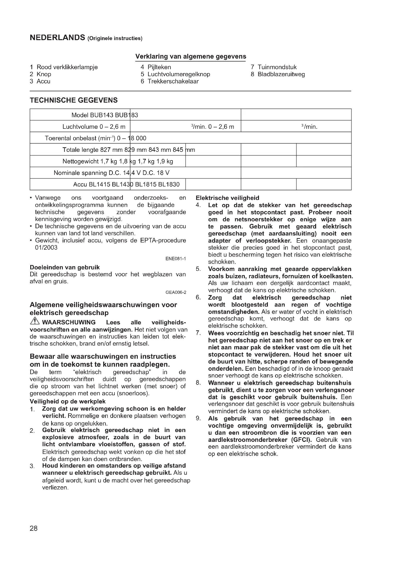 NL Accu Bladblazer Gebruiksaanwijzing