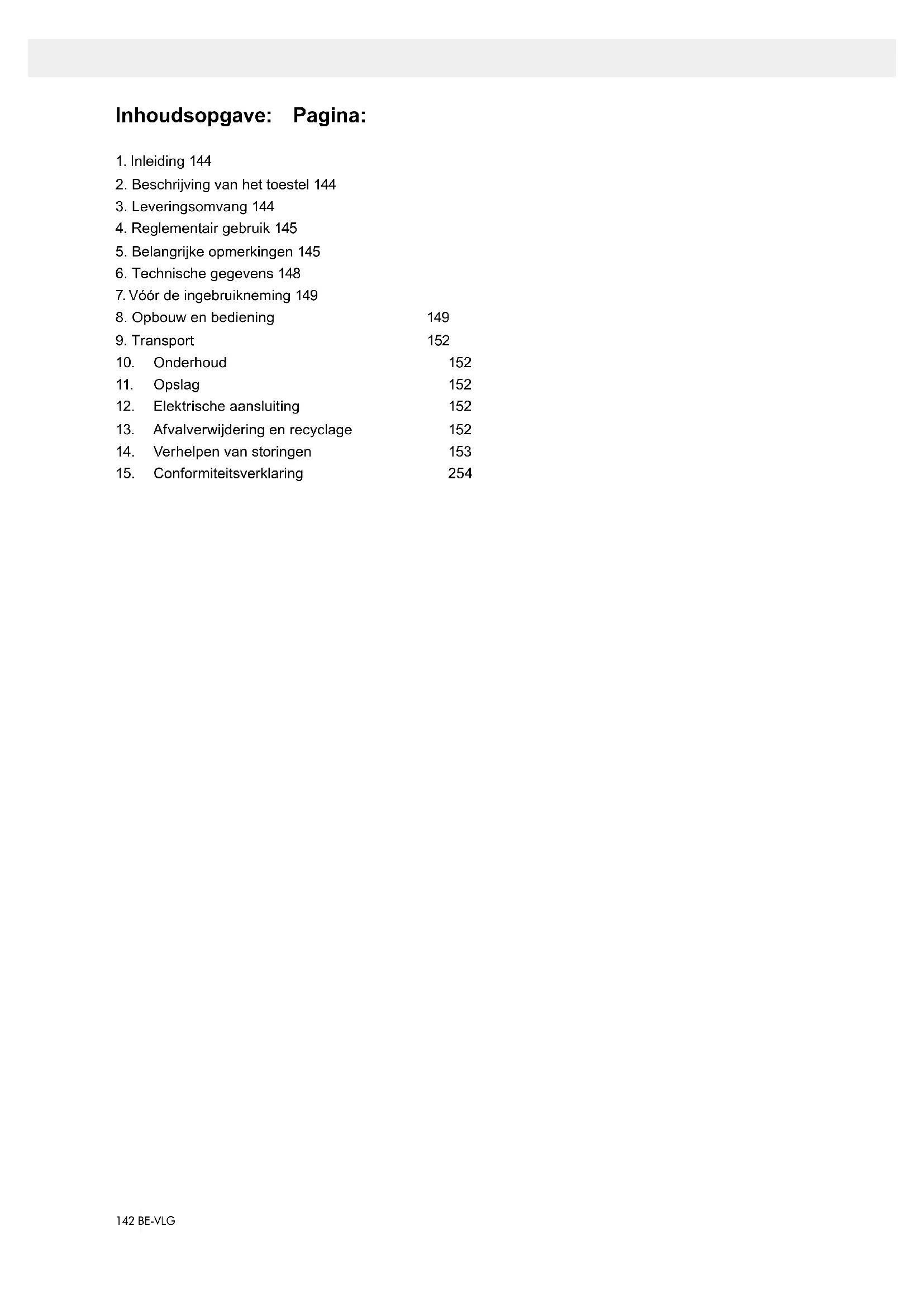 - Bewaar de verpakking indien mogelijk tot het einde van de garantieperiode.145BE-VLG OPGELET De machine en het verpakkingsmateriaal zijn geen speelgoed voor kinderen! Kinderen mogen niet met plastic zakken, folie en kleine onderde- len spelen! Er bestaat gevaar voor inslikken en verstikking!