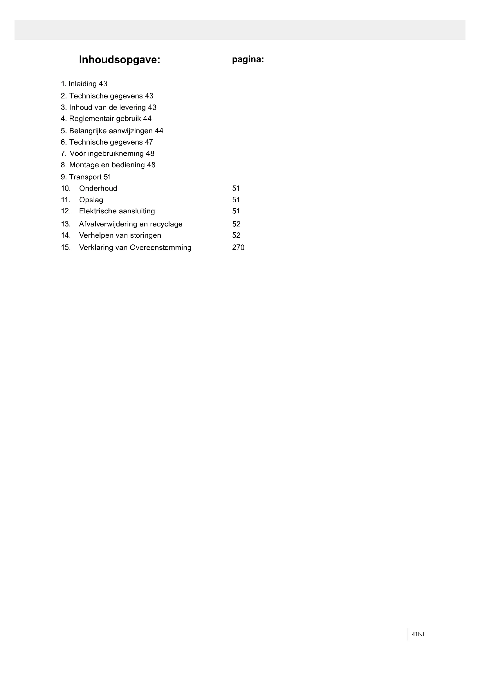 - Verlengsnoeren moeten tot een lengte van 25 m een doorsnede hebben van 1,5 vierkante millimeter. Aansluitingen en reparaties van de elektrische uitrus- ting mogen uitsluitend door een elektromonteur worden uitgevoerd. Vermeld in geval van vragen de volgende gegevens: