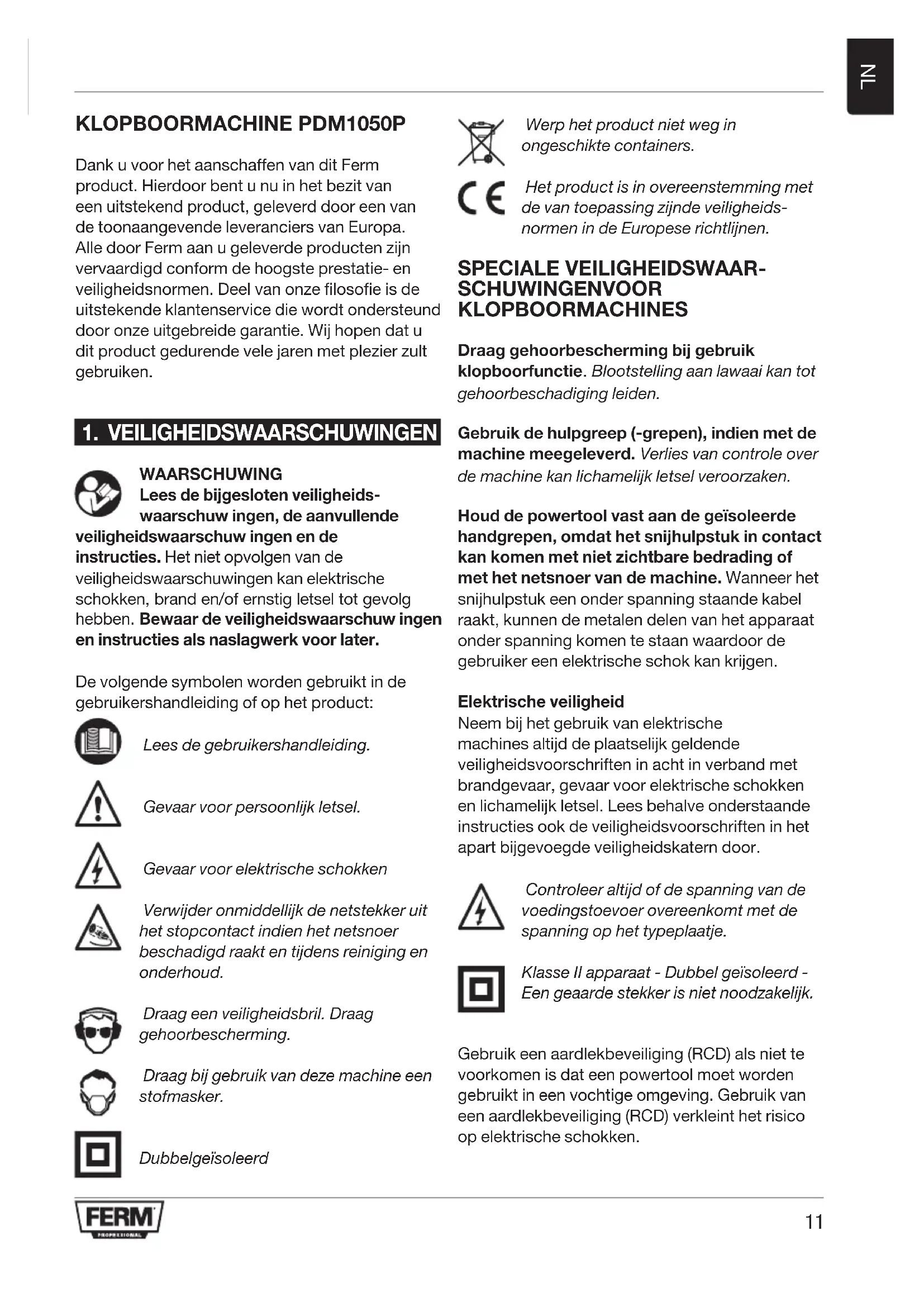 GEBRUIKSAANWIJZING PDM1050P Ferm