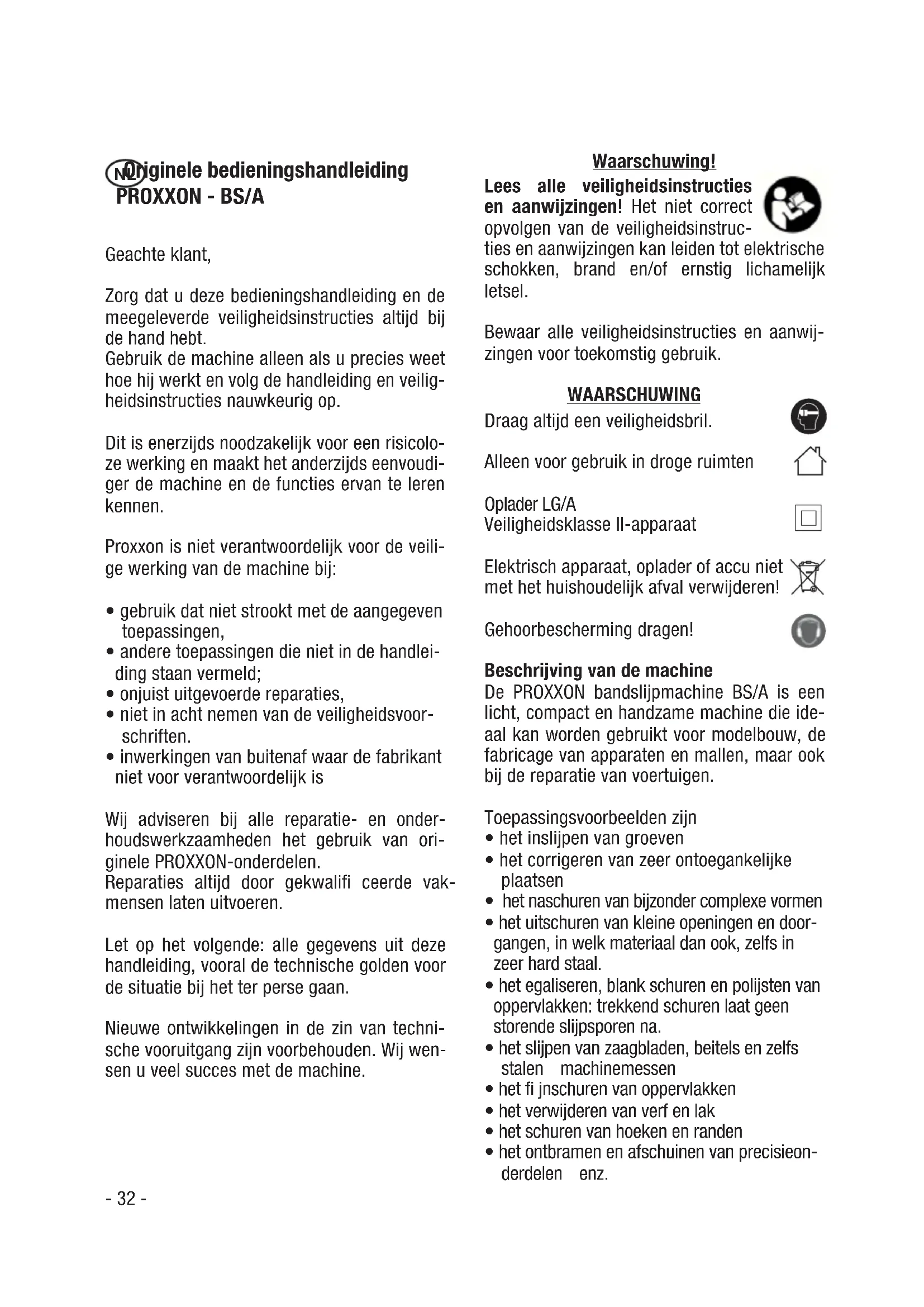 Zorg ervoor dat vooral de geluids- en trillingsmetingen met Proxxon-gereedschap wordenuitgevoerd. Wij+kunnen bij gebruik van producten van andere fabrikanten nicht instaan voor de gedane garanties.