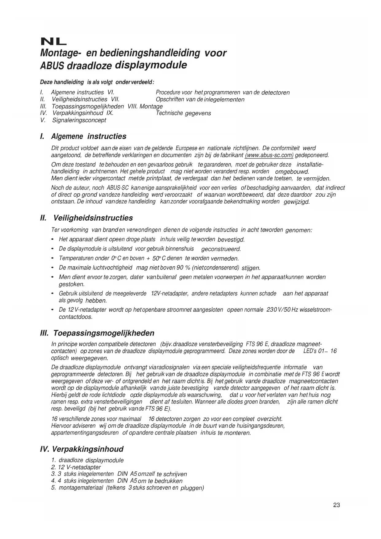 Montage- en bedieningshandleiding voor ABUS draadloze displaymodule Deze handleiding is als volgt onderverdeeld