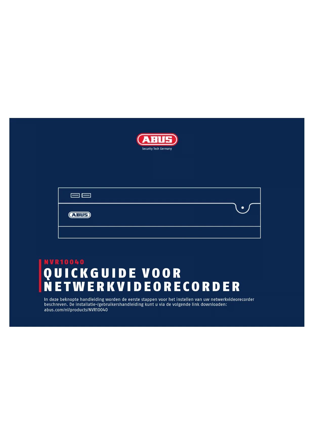 In deze beknopte handleiding worden de eerste stappen voor het instellen van uw netwerkvideorecorder beschreiben. De installmentie-/gebruikershandleiding kunt u via de volgende link downloaden: abus.com/np/products/NVR10040