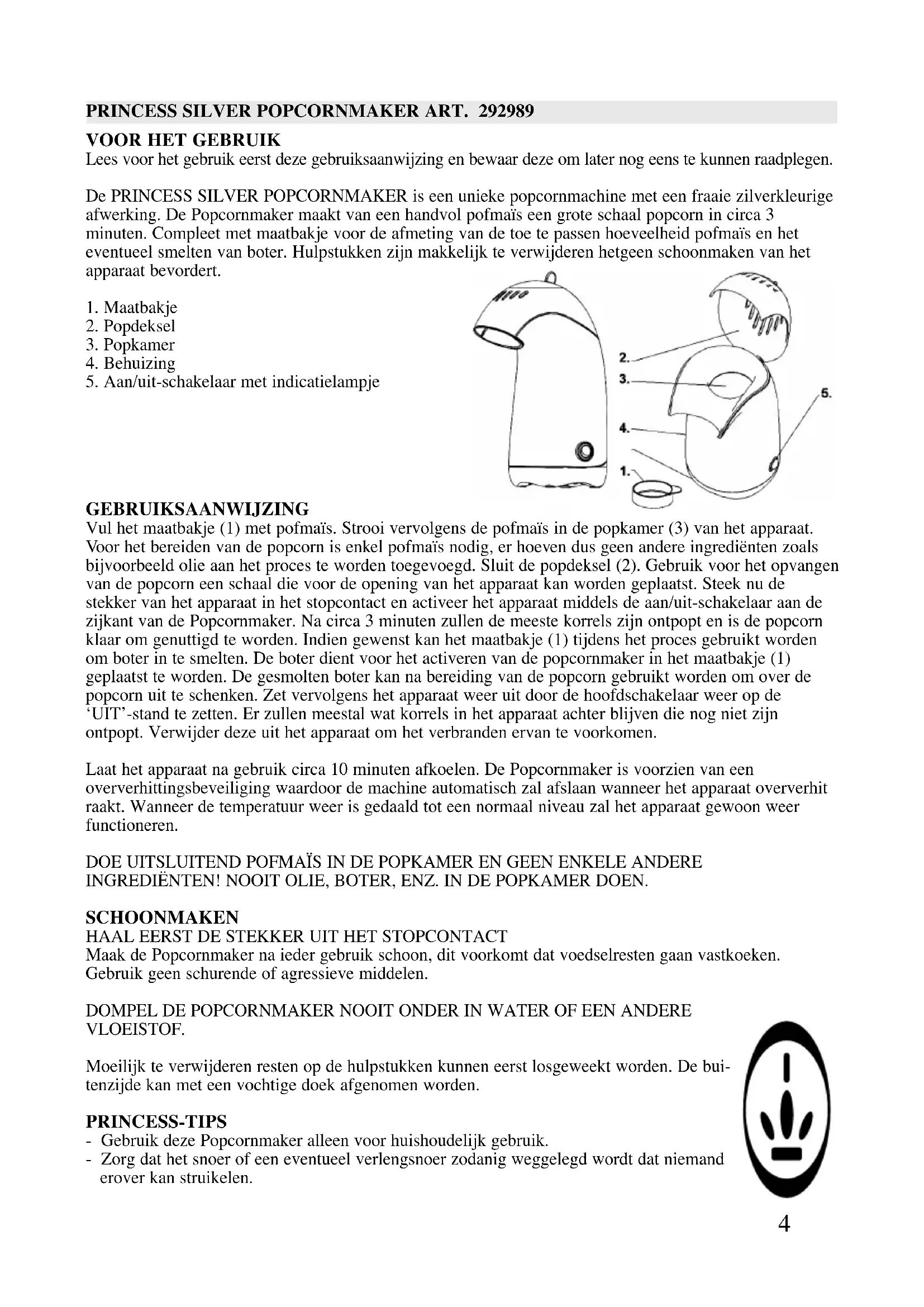- Gebruik deze Popcornmaker alleen voor huishoudelijk gebruik.