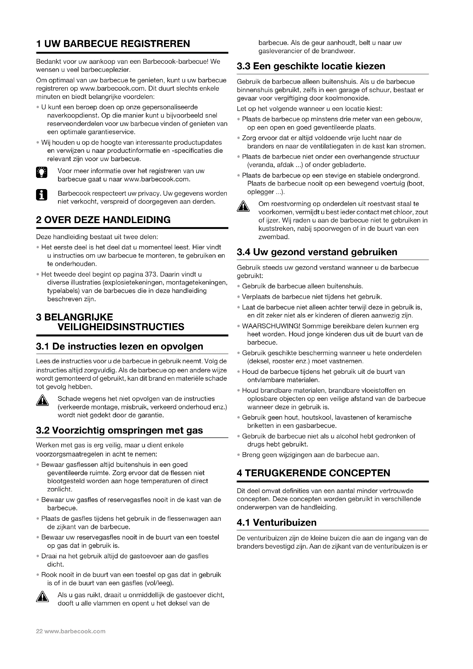 1 Uw barbecue registreren............................................ 22 2 Over deze handleiding................................................ 22 3 Belangrijke veiligheidsinstructies ............................... 22
