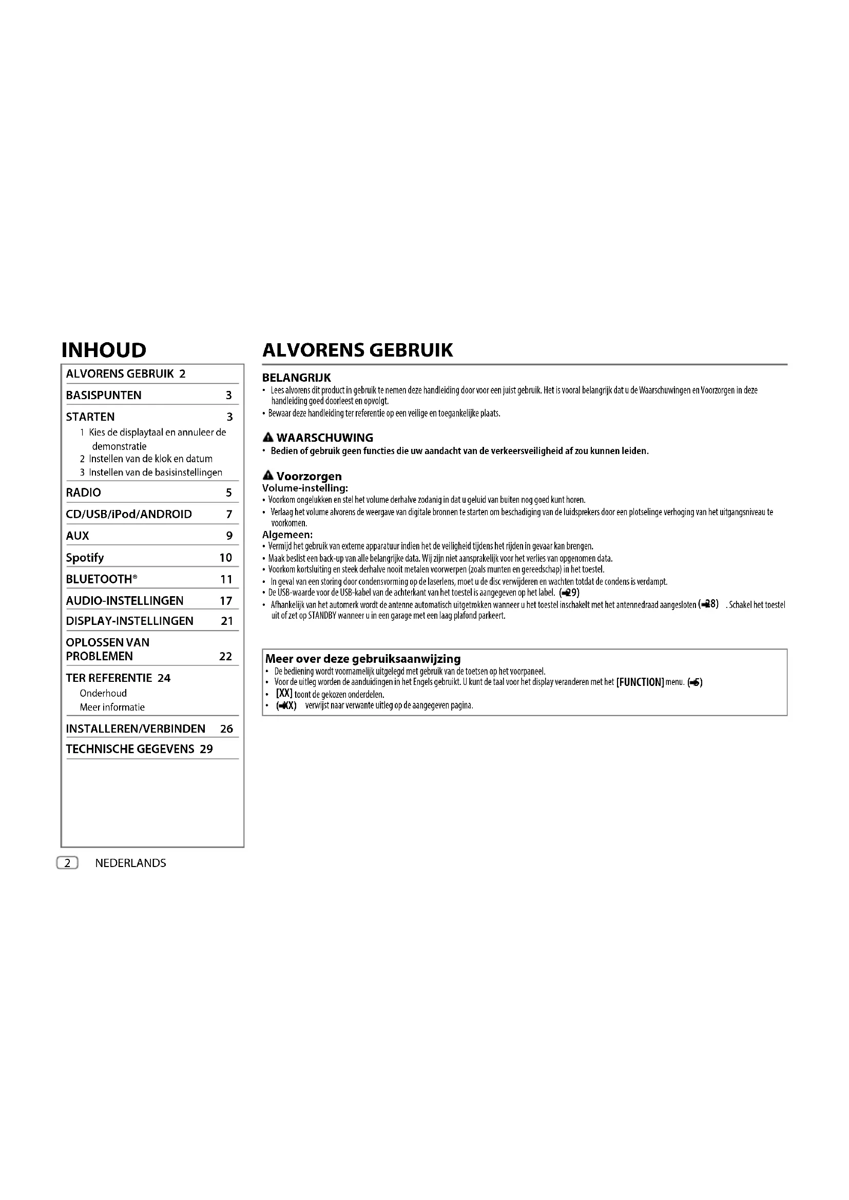 Bedien of gebruik geen functies die uw aandacht van de verkeersveiligheid af zou kunnen leiden. Voorzorgen Volume-instelling: