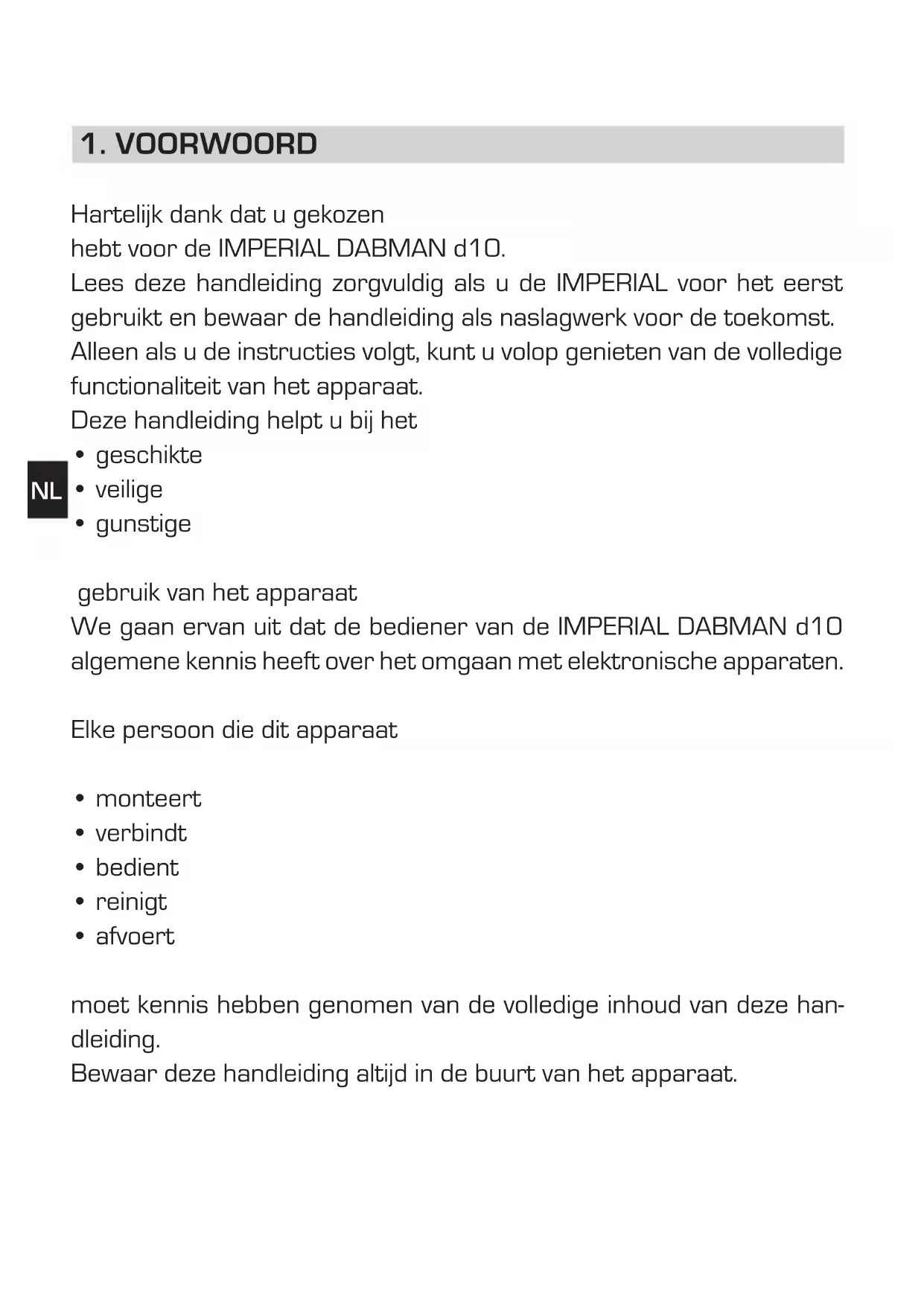 GEBRUIKSAANWIJZING Dabman D10 Imperial