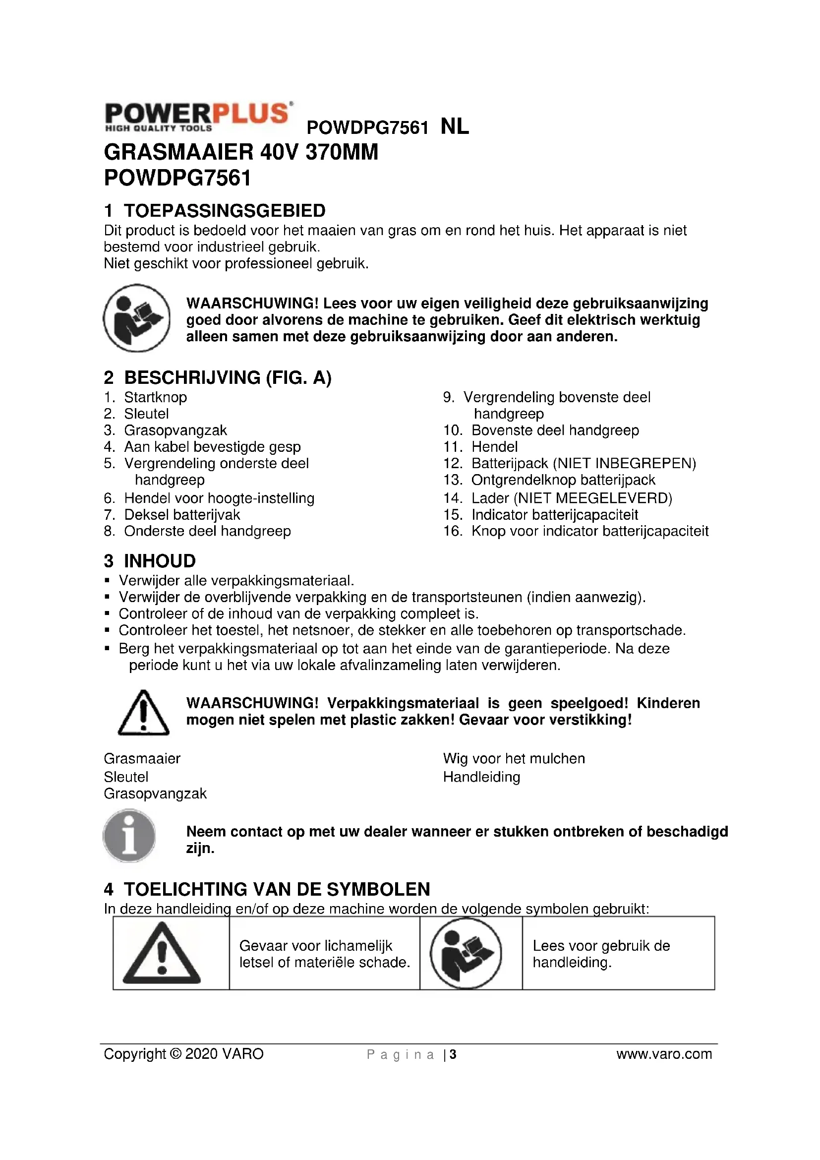 Lees voor gebruik de handleiding.POWDPG7561 NL Copyright © 2020 VARO P a g i n a | 4 www.varo.com