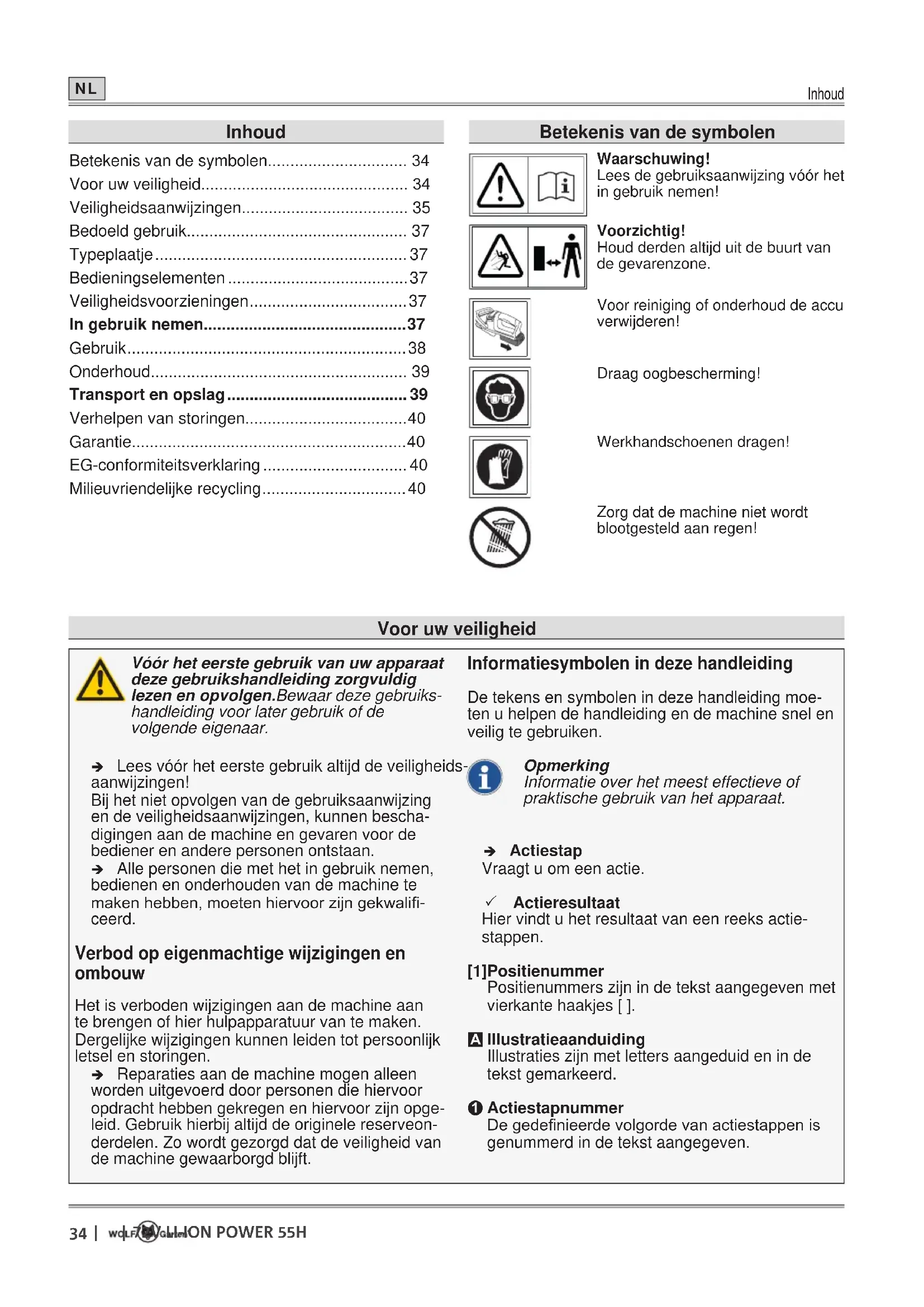 Betekenis van de symbolen.... 34