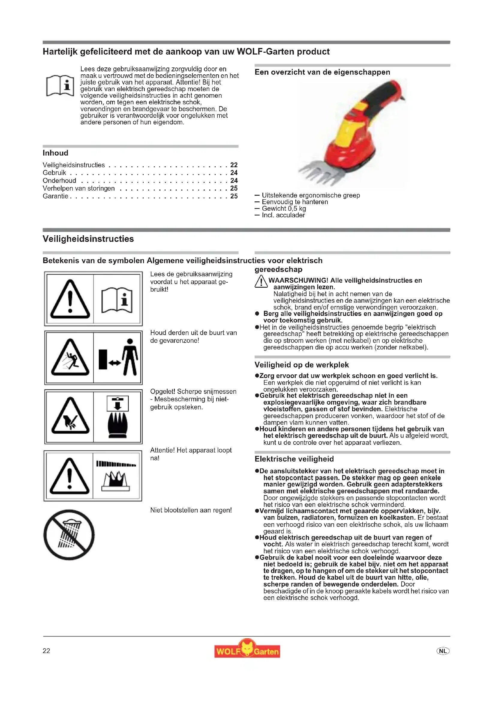 - Hartelijk gefeliciteerd met de aankoop van uw WOLF-Garten product Inhoud Veiligheidsinstructies p. 22