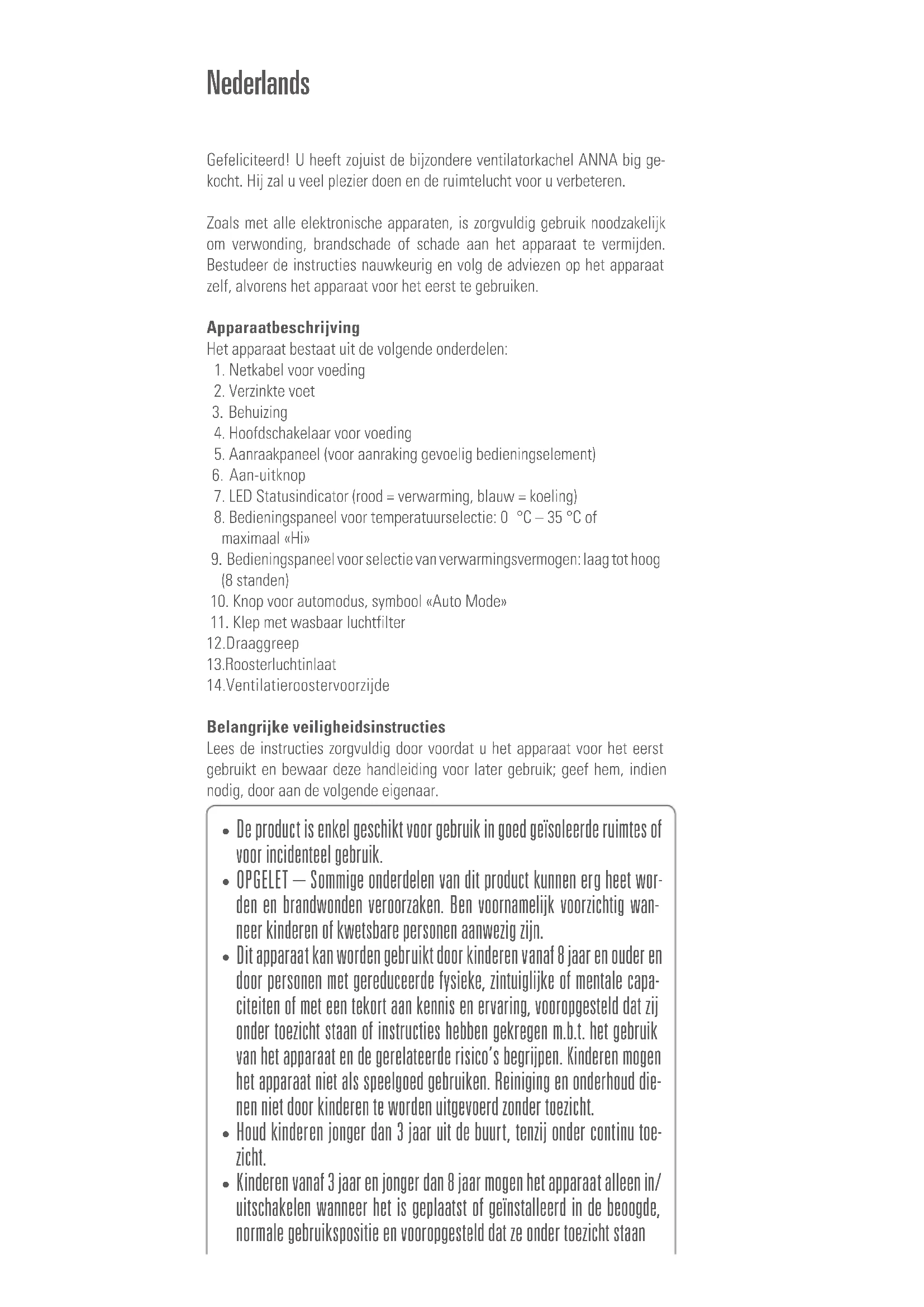 Gefeliciteerd! U heeft zojuist de bijzondere ventilatorkachel ANNA big gekocht. Hij zal u veel plezier doen en de ruimtelucht voor u verbeteren.