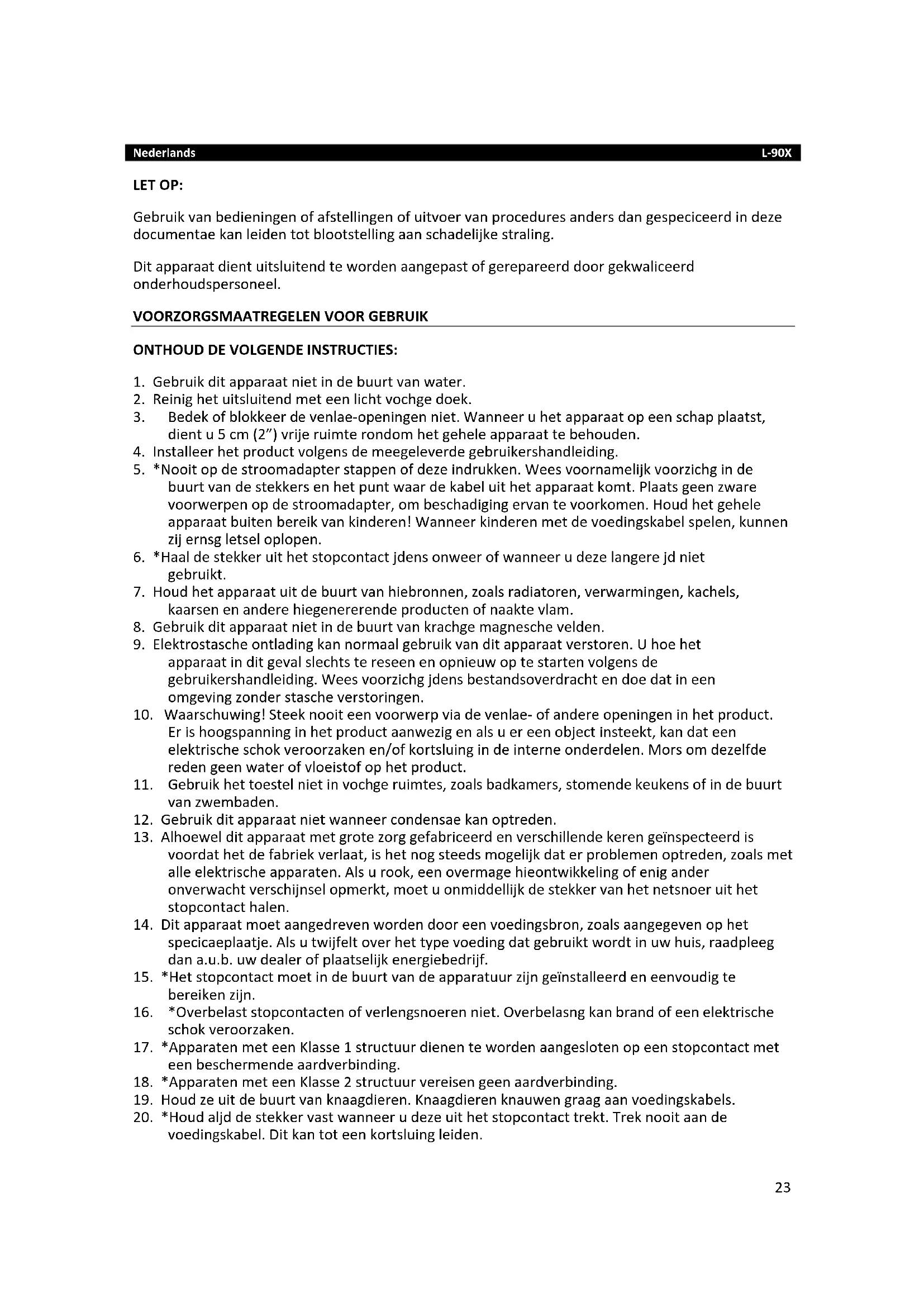 For more information and helpdesk support, please visit www.lenco.com Lenco Benelux BV, Thermiekstraat 1a, 6361 HB, The Netherlands.23 Nederlands L-90X LET OP: Gebruik van bedieningen of afstellingen of uitvoer van procedures anders dan gespecificeerd in deze documentatie kan leiden tot blootstelling aan schadelijke straling. Dit apparaat dient uitsluitend te worden aangepast of gerepareerd door gekwalificeerd onderhoudspersoneel.