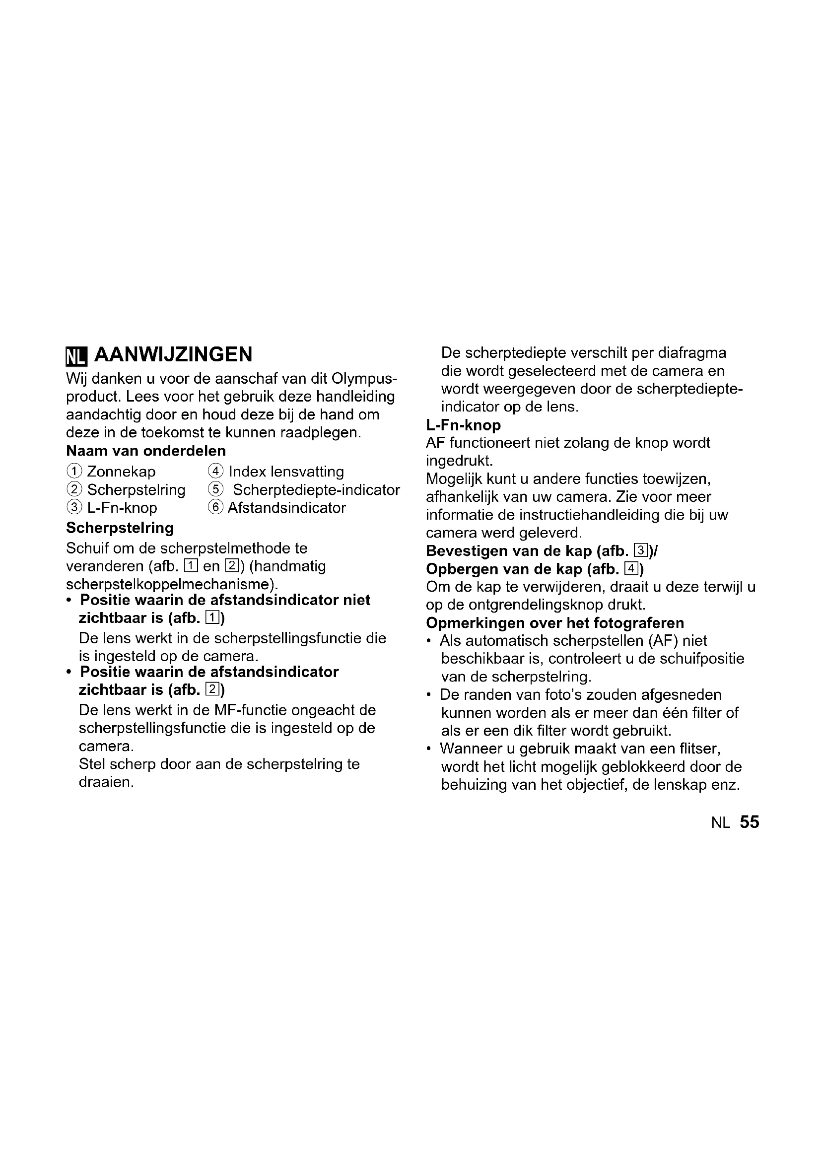 GEBRUIKSAANWIJZING M.Zuiko Digital 45mm f1.8 OLYMPUS