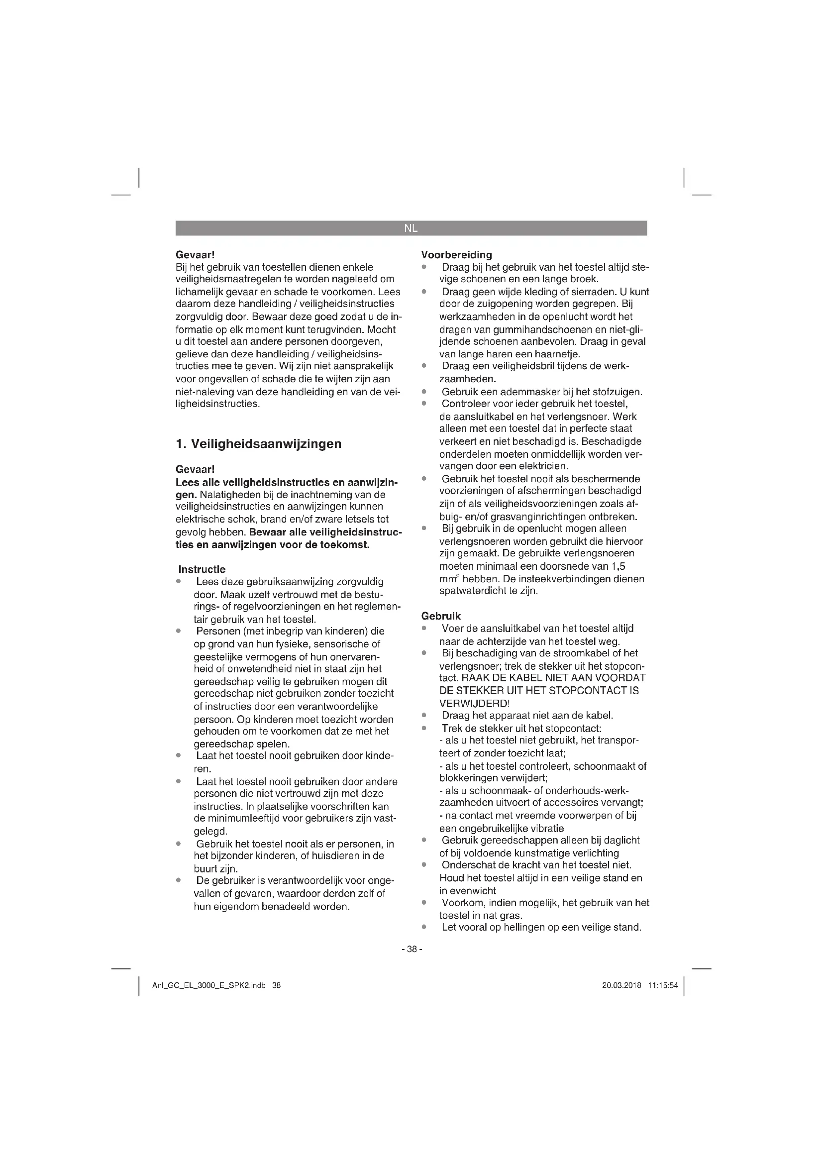 Let vooral op hellingen op een veilige stand. Anl_GC_EL_3000_E_SPK2.indb 38Anl_GC_EL_3000_E_SPK2.indb 38 20.03.2018 11:15:5420.03.2018 11:15:54NL