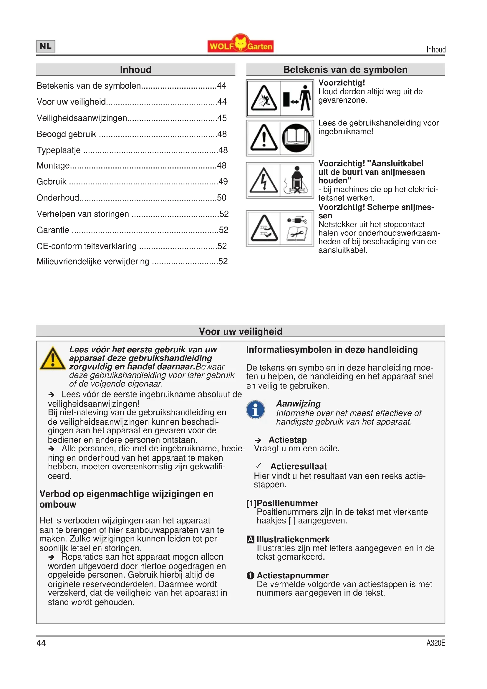 GEBRUIKSAANWIJZING A 320 E Wolf Garten