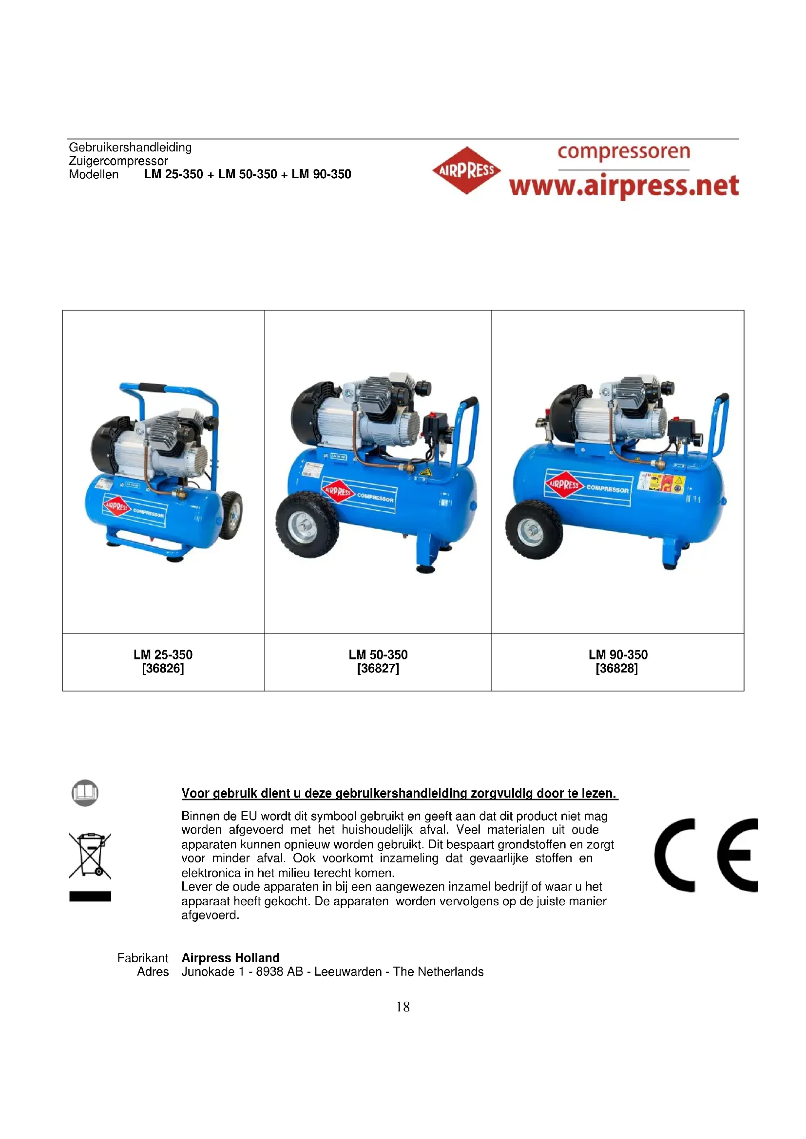 Download de handleiding voor uw Compressor in PDF-formaat gratis! Vind uw handleiding LM 90350 - Airpress en neem uw elektronisch apparaat weer in handen. Op deze pagina staan alle documenten die nodig zijn voor het gebruik van uw apparaat. LM 90350 van het merk Airpress.