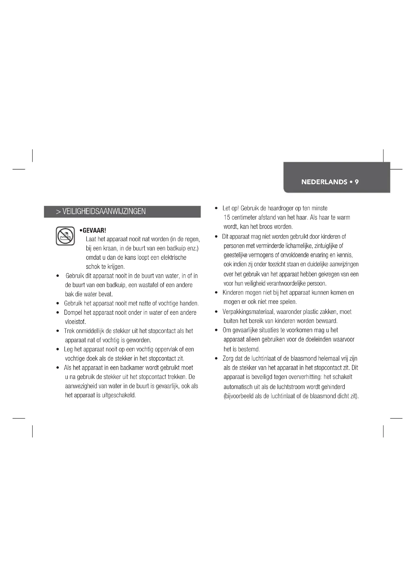 - Controller het snoer van het apparaat regelmatin op breuken om kortsluiting te voorkomen.