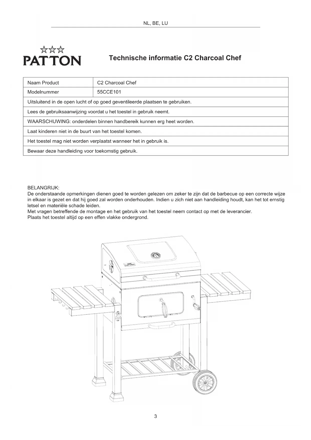 GEBRUIKSAANWIJZING C2 Charcoal Chef Patton