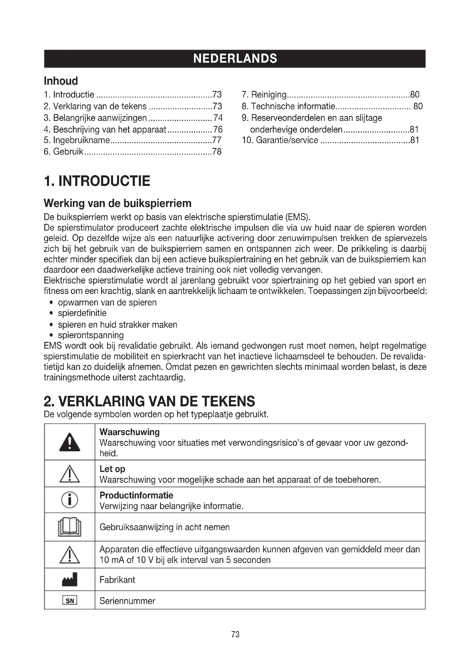 4. Beschrijving van het apparaat ................... 76