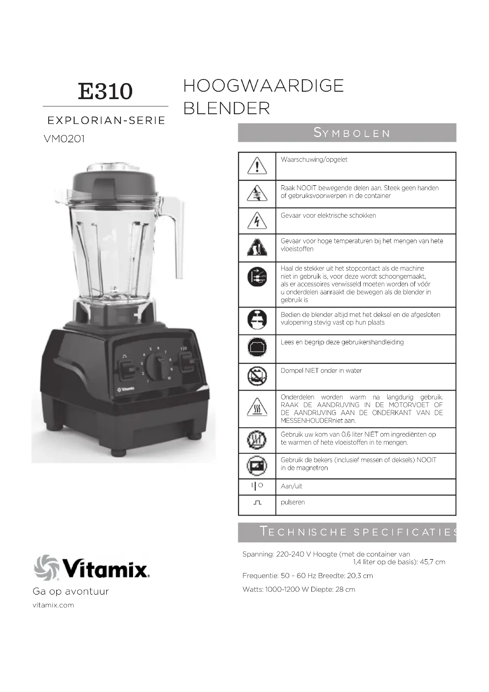 Explorian E310 - Keukenmachine Vitamix - Gratis gebruiksaanwijzing en handleiding