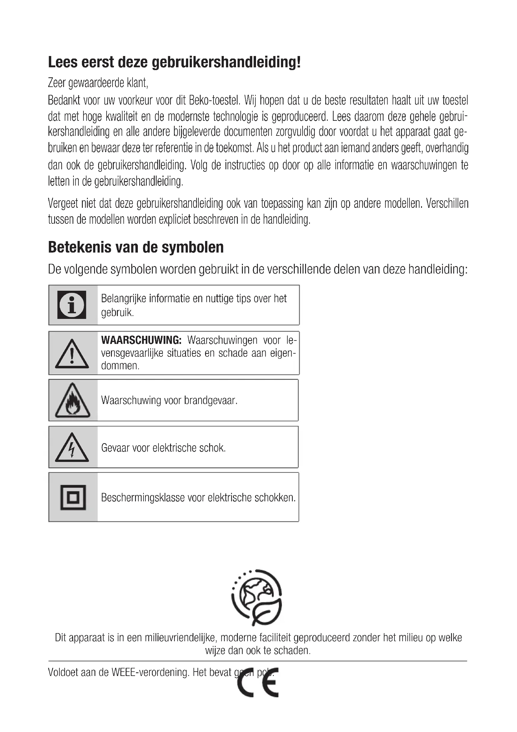 Belangrijke veiligheids- en milieu-instructies