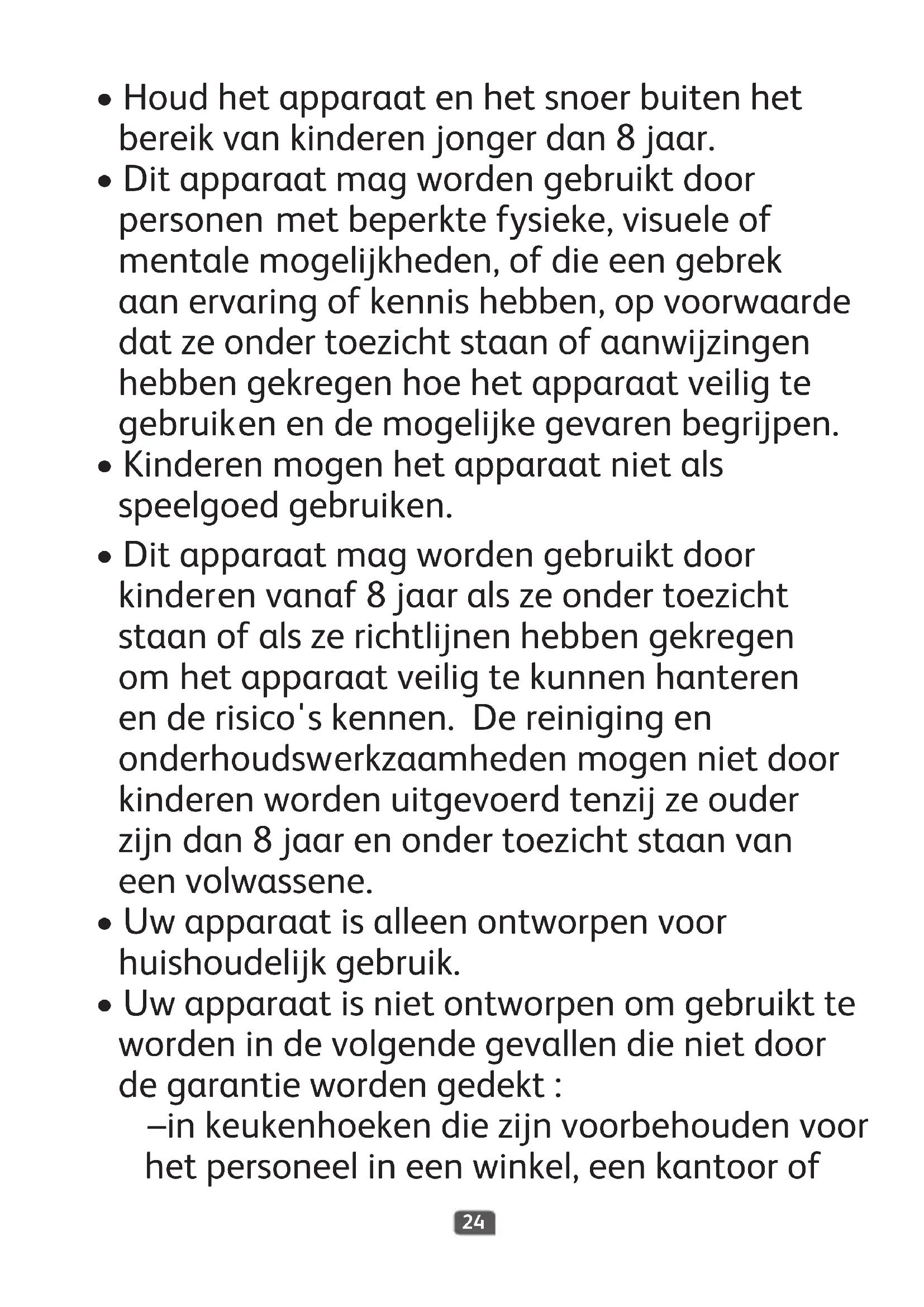- Kinderenmogenhetapparaatnietals speelgoedgebruiken.25 inandereprofessioneleomgevingen, – opboerderijen, – doorklanteninhotels,motelsofandere overnachtingsgelegenheden, – zoalsbed&breakfasts.