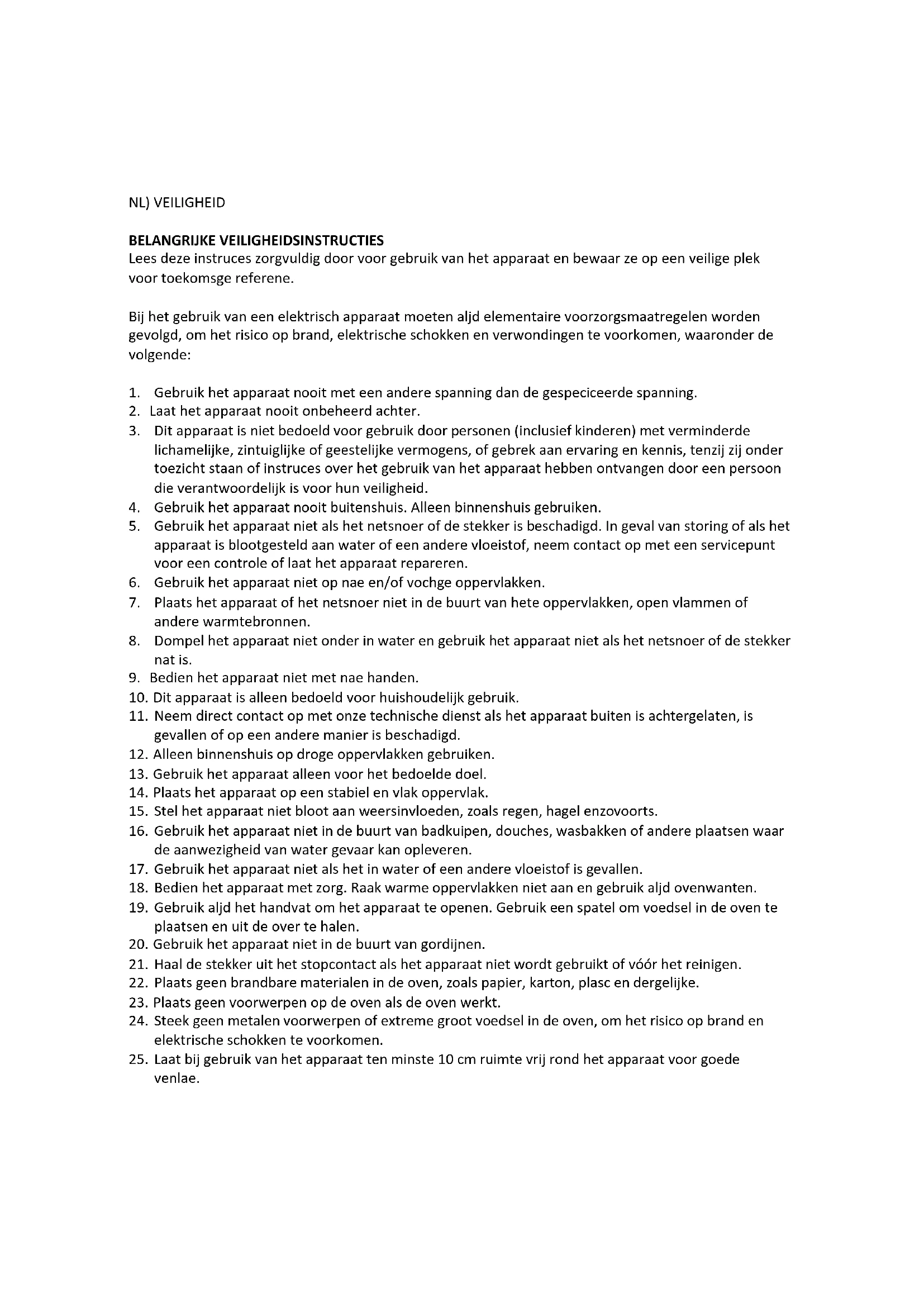 - Dit apparaat is Niet bedoeld voor gebruik door Personen (inclusief kinderen) met verminderde lichamelijke, zintuiglijke of geestelijkke vermogens, of gebrek aan ervaring en kennis, tenzij zij onder toezicht staan of instruces over het gebruik van het apparaat hebben ontvangen door een persoon die verantwoordelijk is voor hun veiligheid.