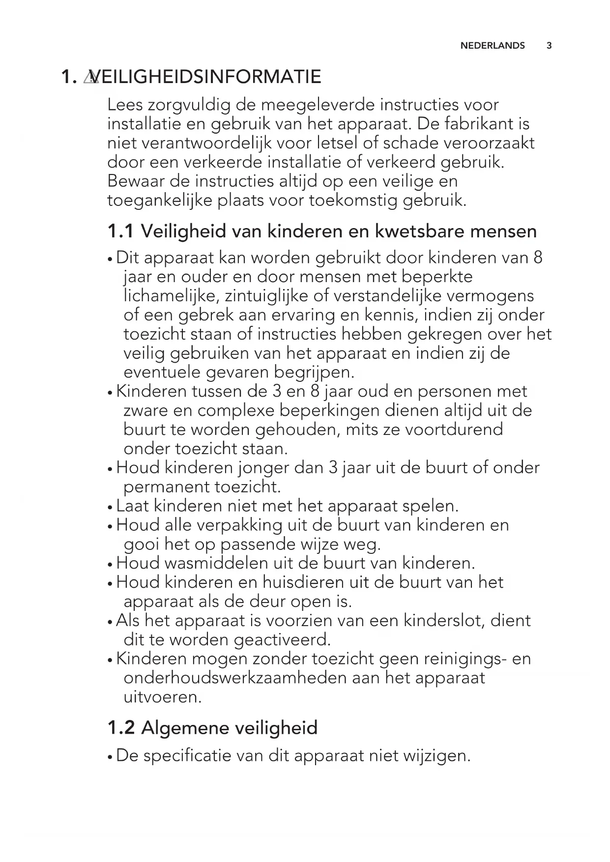 - Kinderen mogen zonder toezicht geen reinigings- en onderhoudswerkzaamheden aan het apparaat uitvoeren.