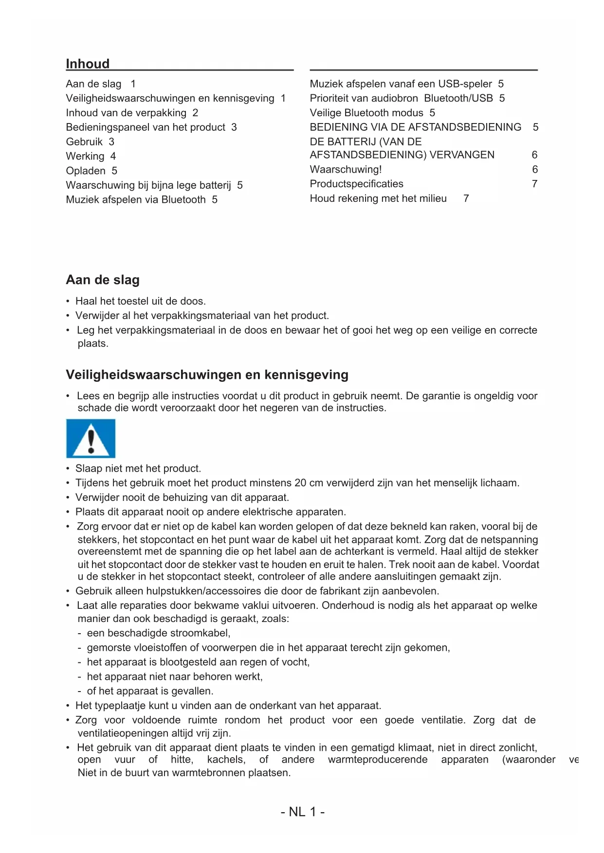 Het gebruik van dit apparaat dient plaat te vinden in een gematigd klimaat, Niet in direct zonlicht, open vuur of但它, kachels, of andere warmteproduender apparaten (waaronder viet Niet in de buurt van warmtebronnenplaatsen.
