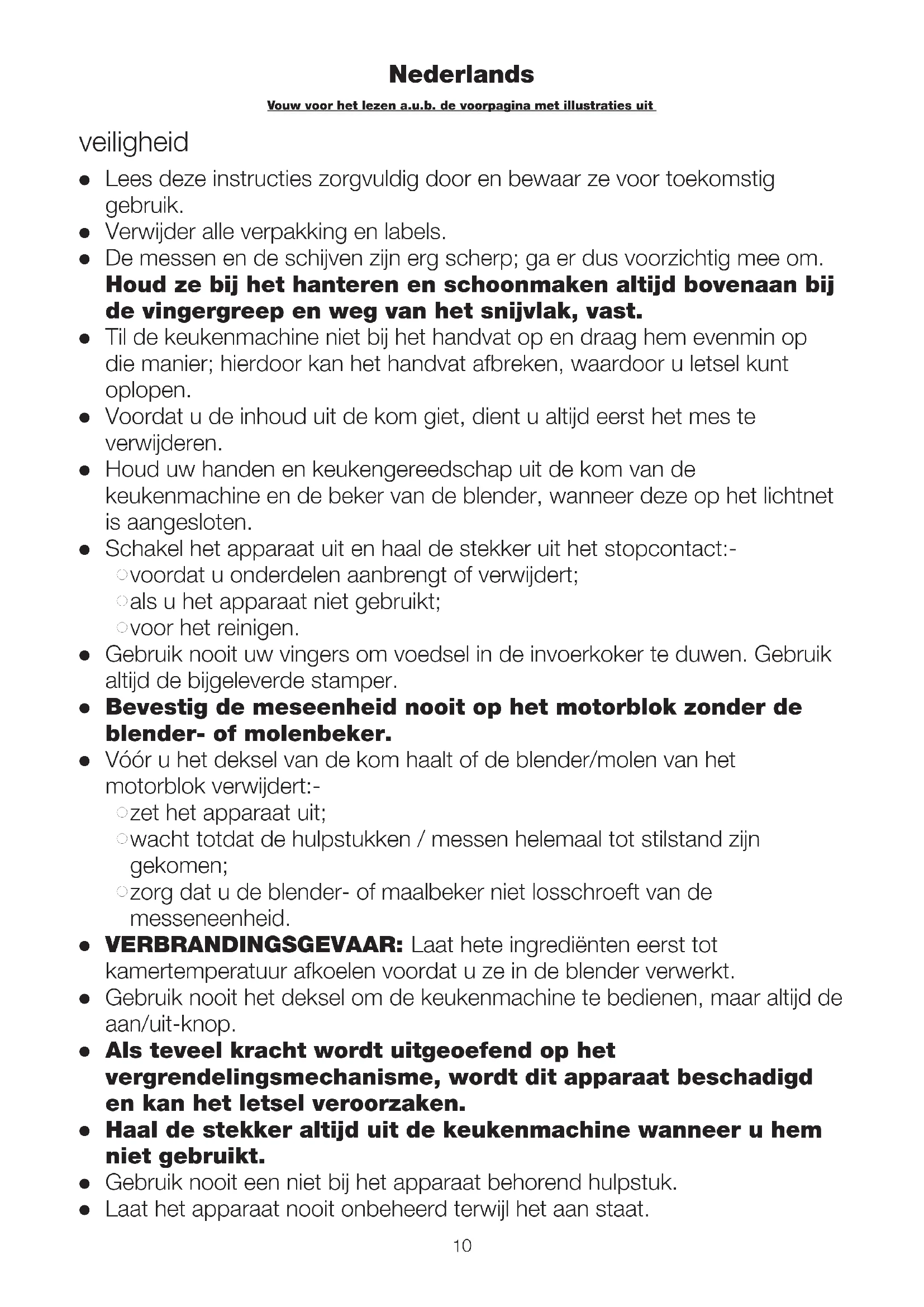 ouw voor het lezen a.u.b. de voorpagina met illustraties uitG Gebruik nooit een beschadigd apparaat. Laat het nakijken of repareren: zie Onderhoud en klantenservice.