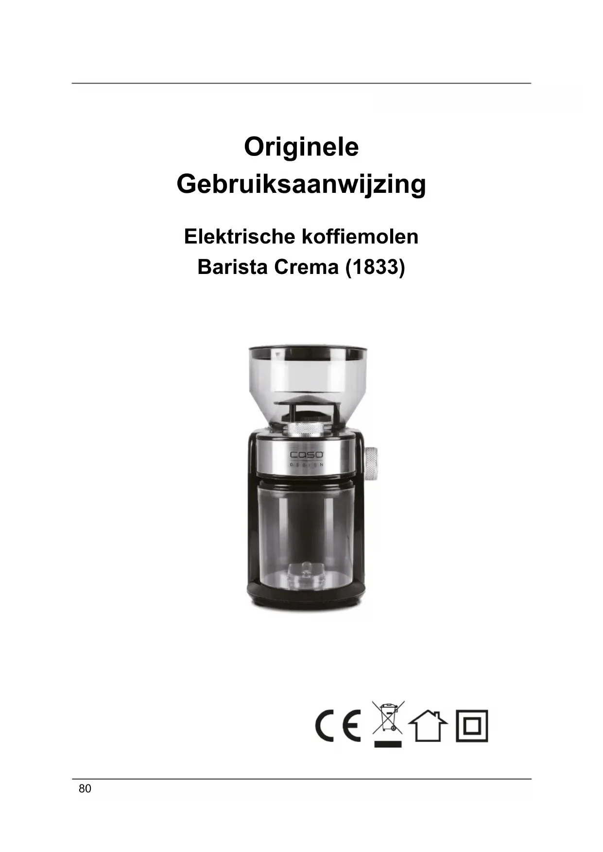 Originele Gebruiksaanwijzing Elektrische koffiemolen Barista Crema (1833)81 52 Gebruiksaanwijzing