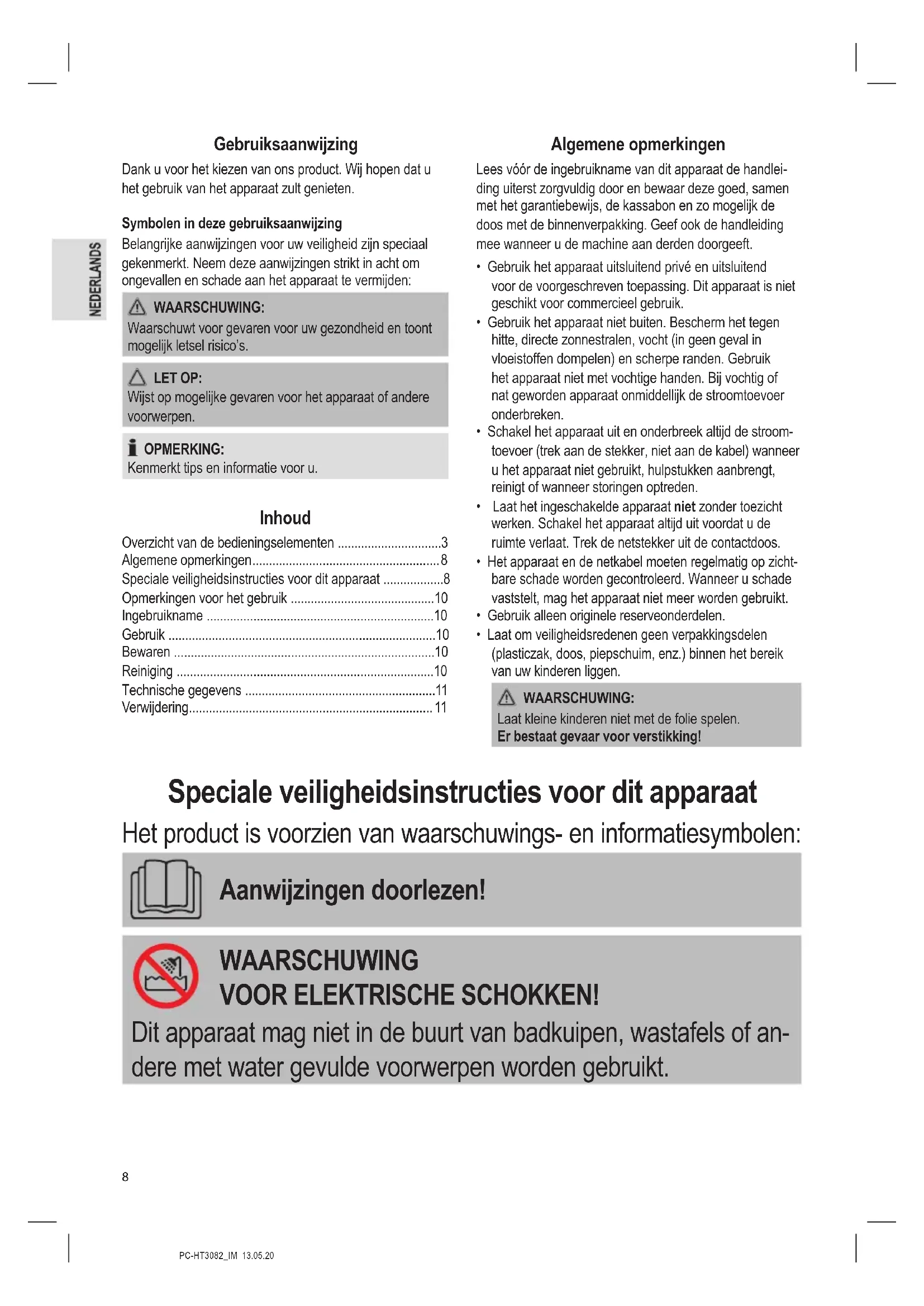 GEBRUIKSAANWIJZING PCHT 3082 ProfiCare