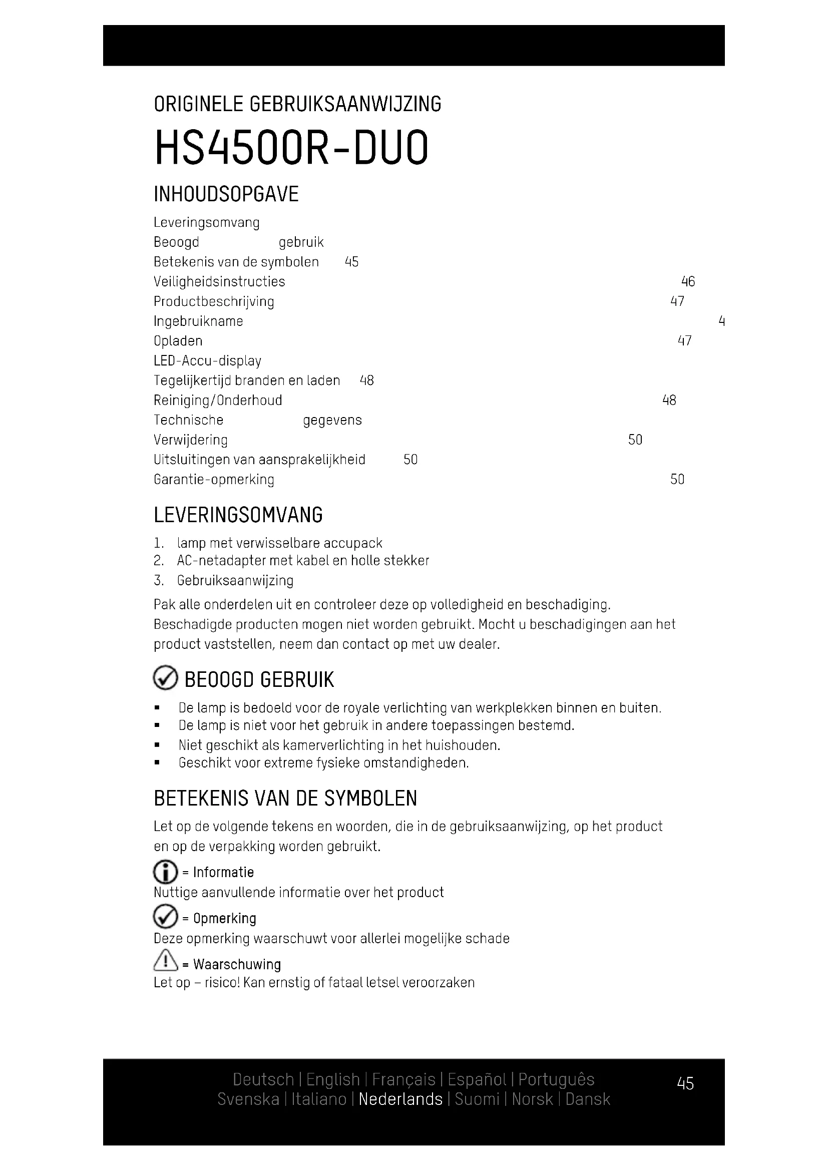 GEBRUIKSAANWIJZING HS4500RDUO ANSMANN