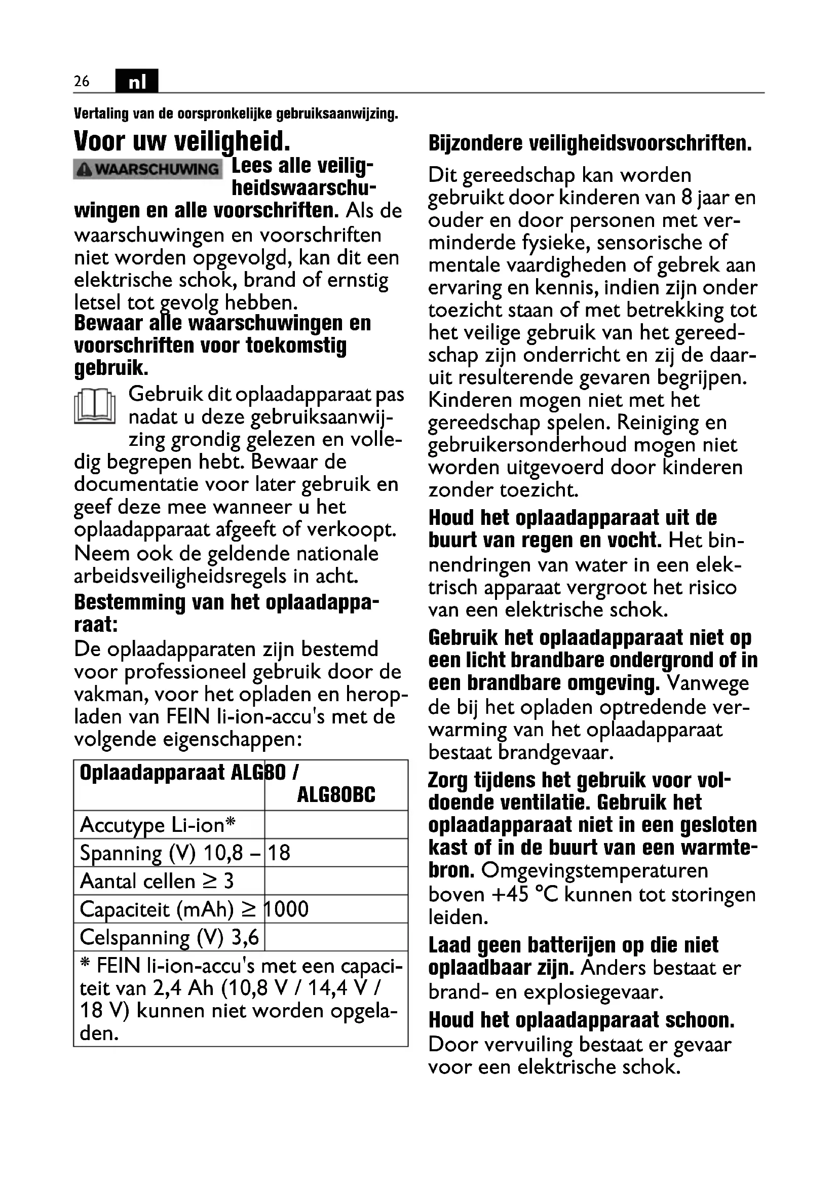 ALG 80 BC - Batterijlader Fein - Gratis gebruiksaanwijzing en handleiding