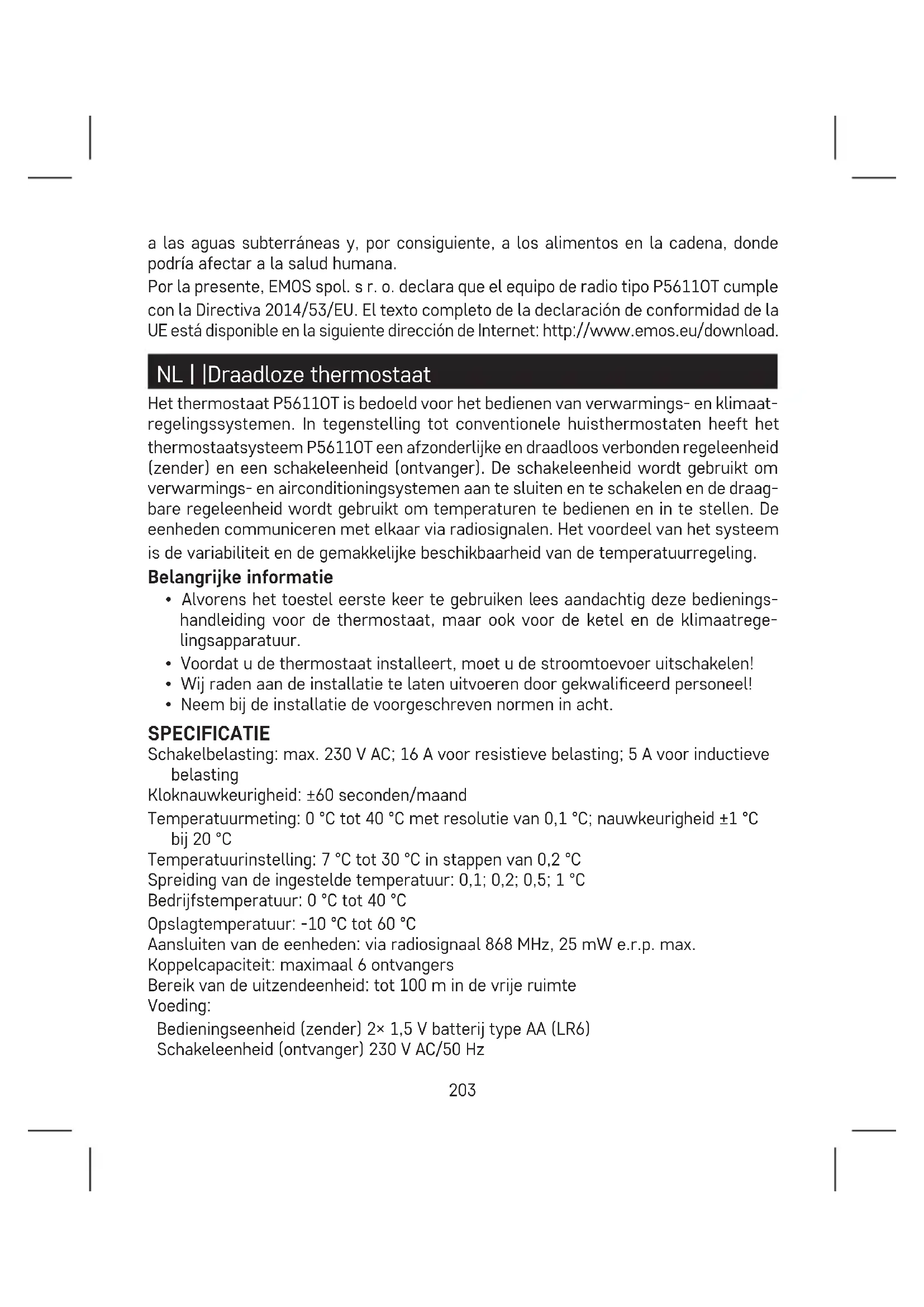 GEBRUIKSAANWIJZING P5611OT Emos