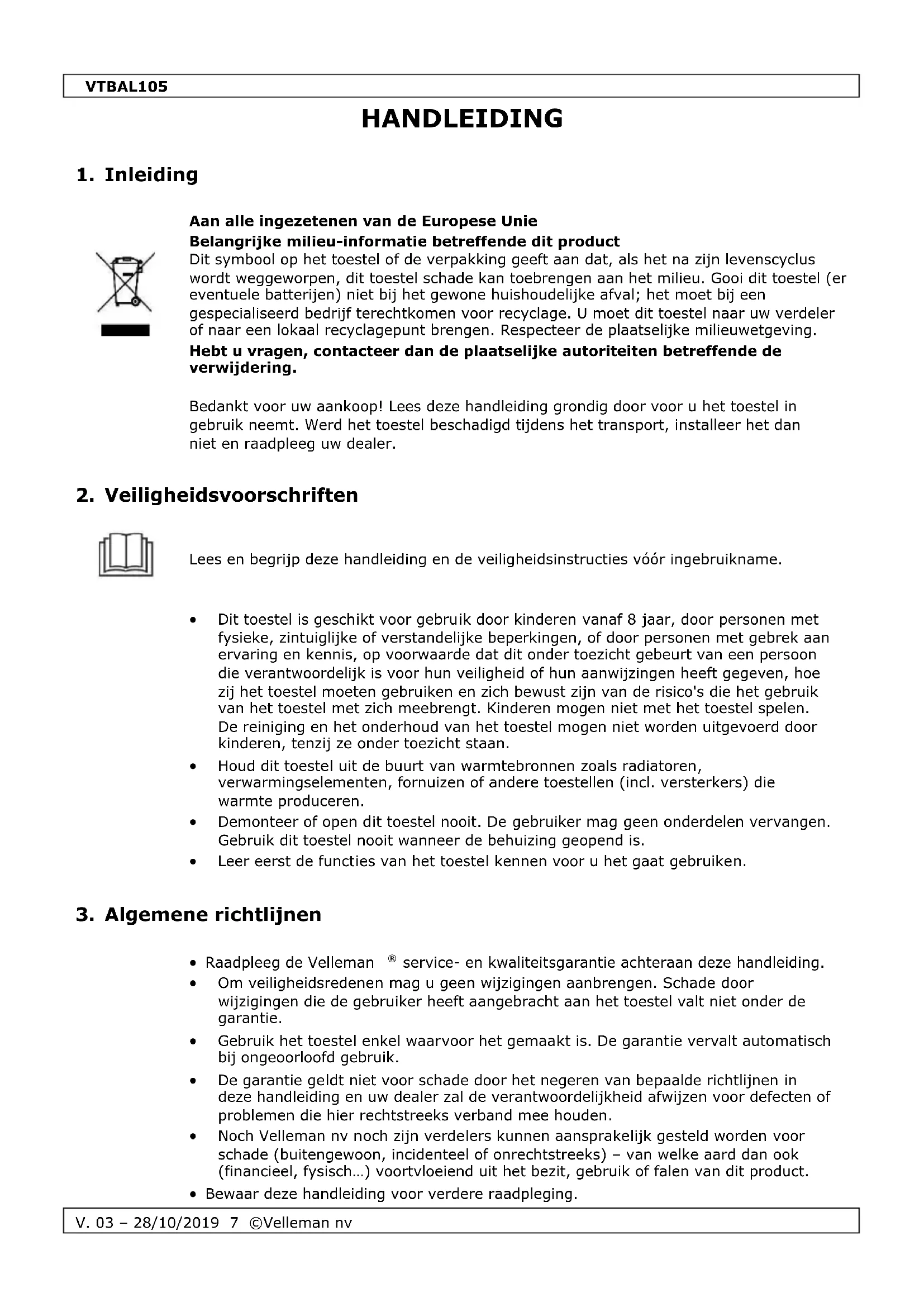 - Raadpleeg de Velleman ^ service- en kwaliteitsgarantie zicheraan deze handledging.