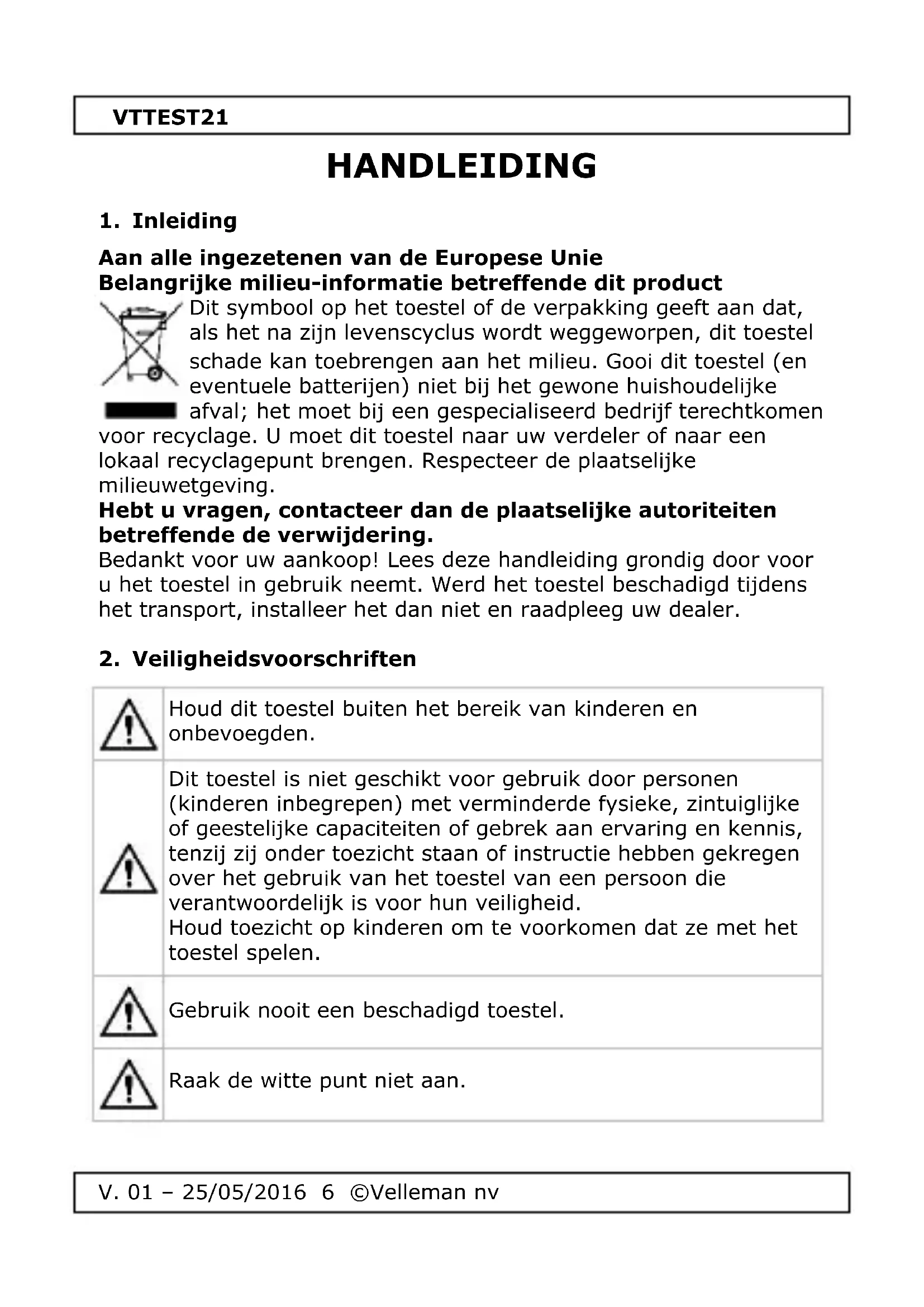 V. 01 – 25/05/2016 7 ©Velleman nv