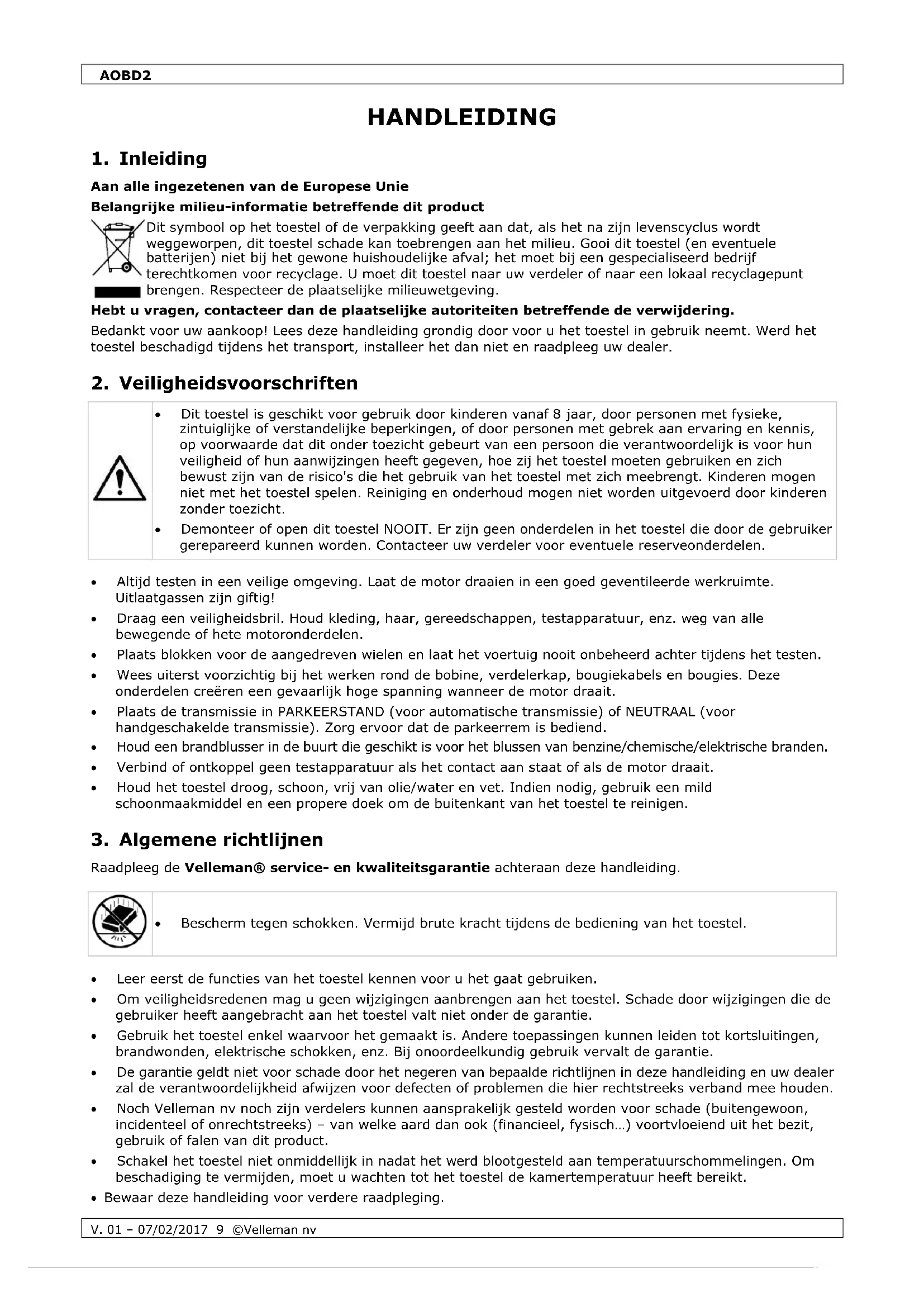 Raadpleeg de Velleman® service- en kwaliteitsgarantie achteraan deze handleiding.