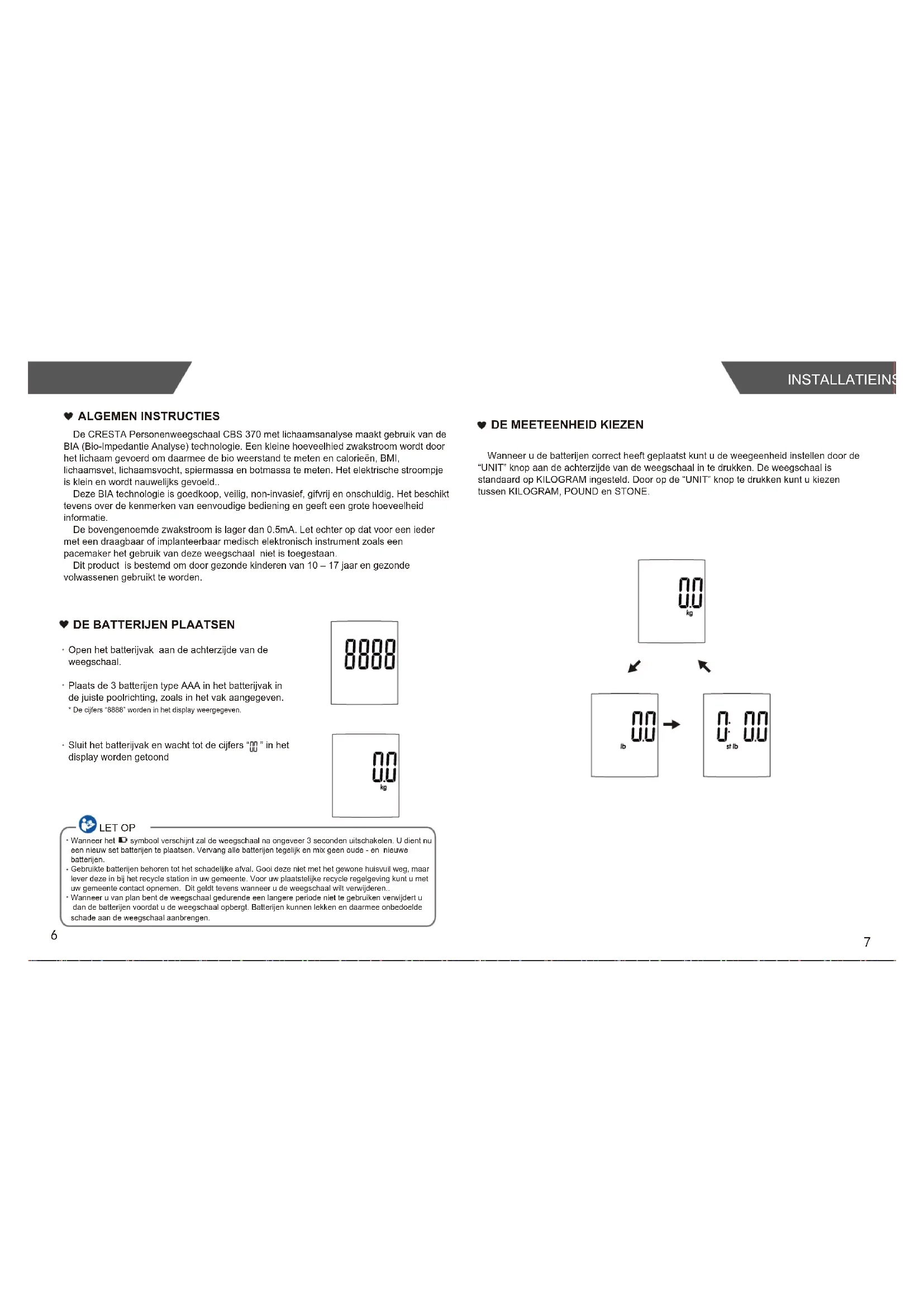- Deze weegschaal is uitsluitend bestemd voor het wegen van personen, niet voor het verifiëren van het gewicht van goederen.
